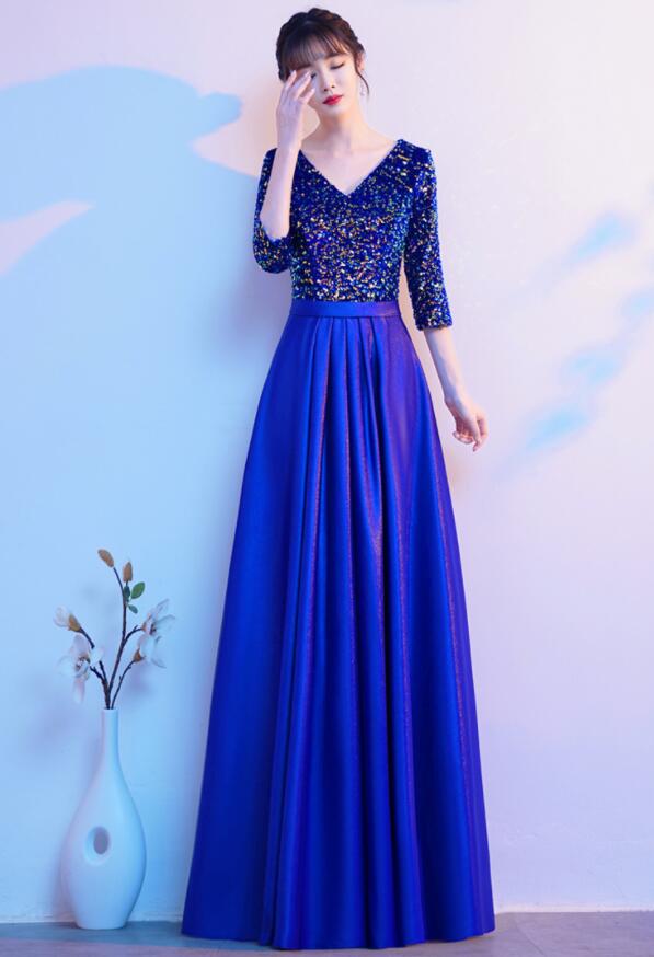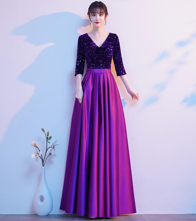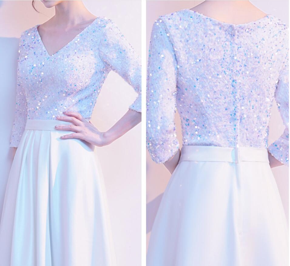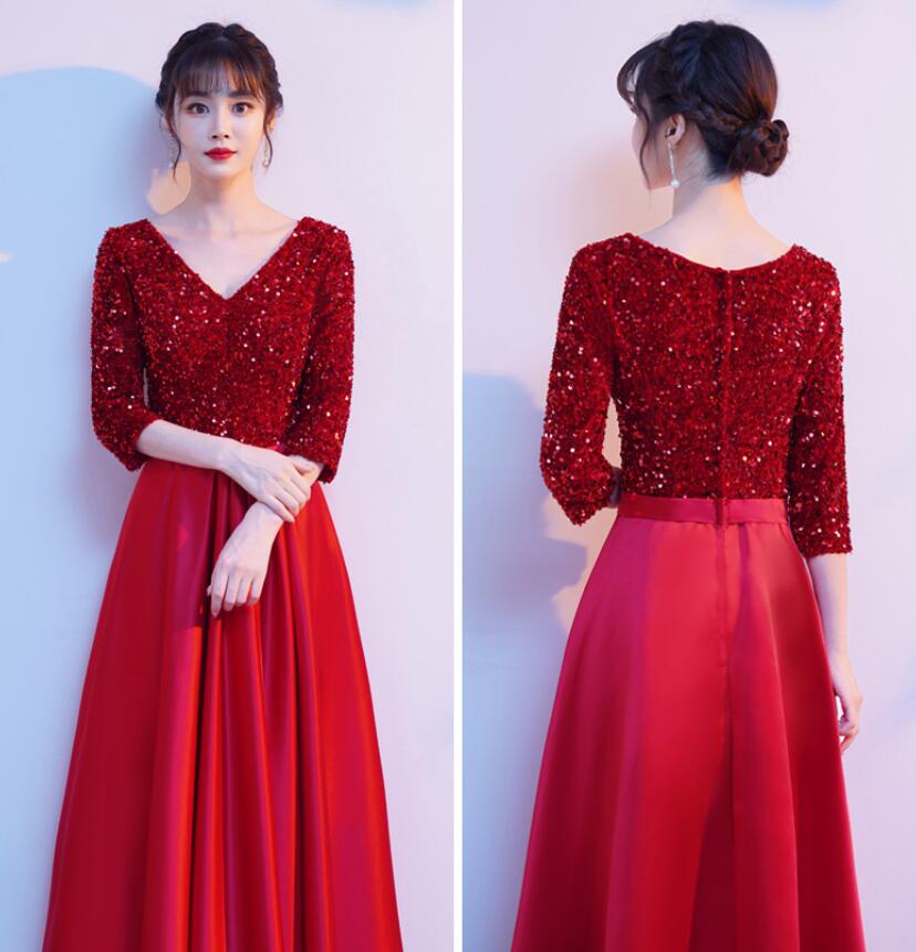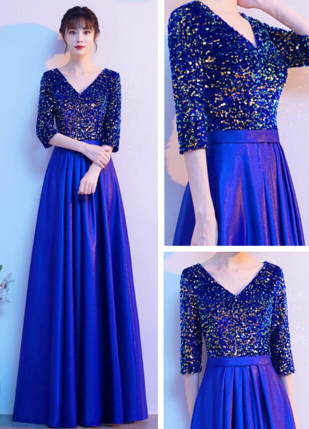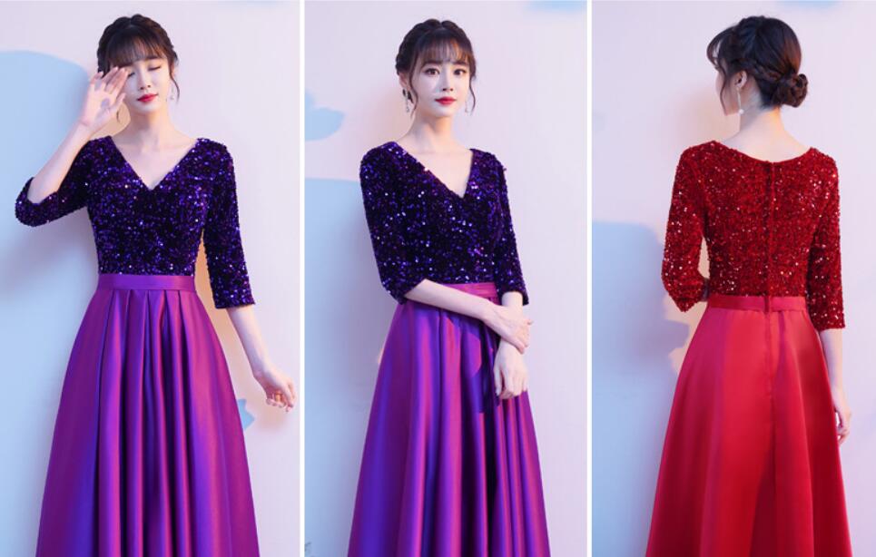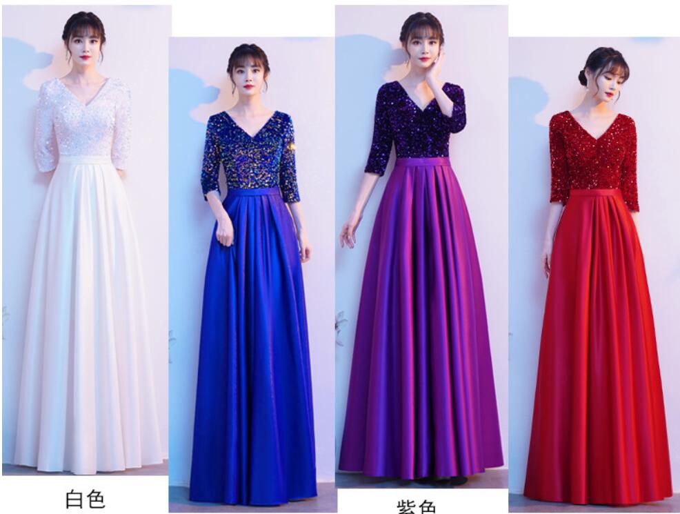 レディース ワンピース パーティードレス Vネック イブニングドレス スパンコール付き フレアドレス コンサート フォーマル 二次会 忘年会 演奏会披露宴