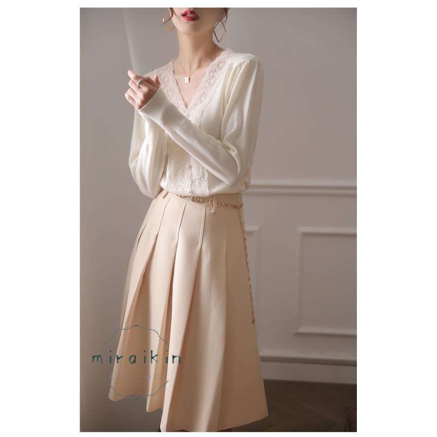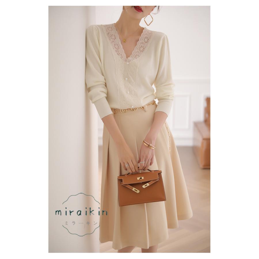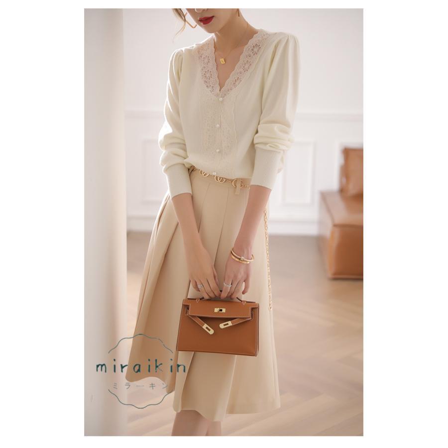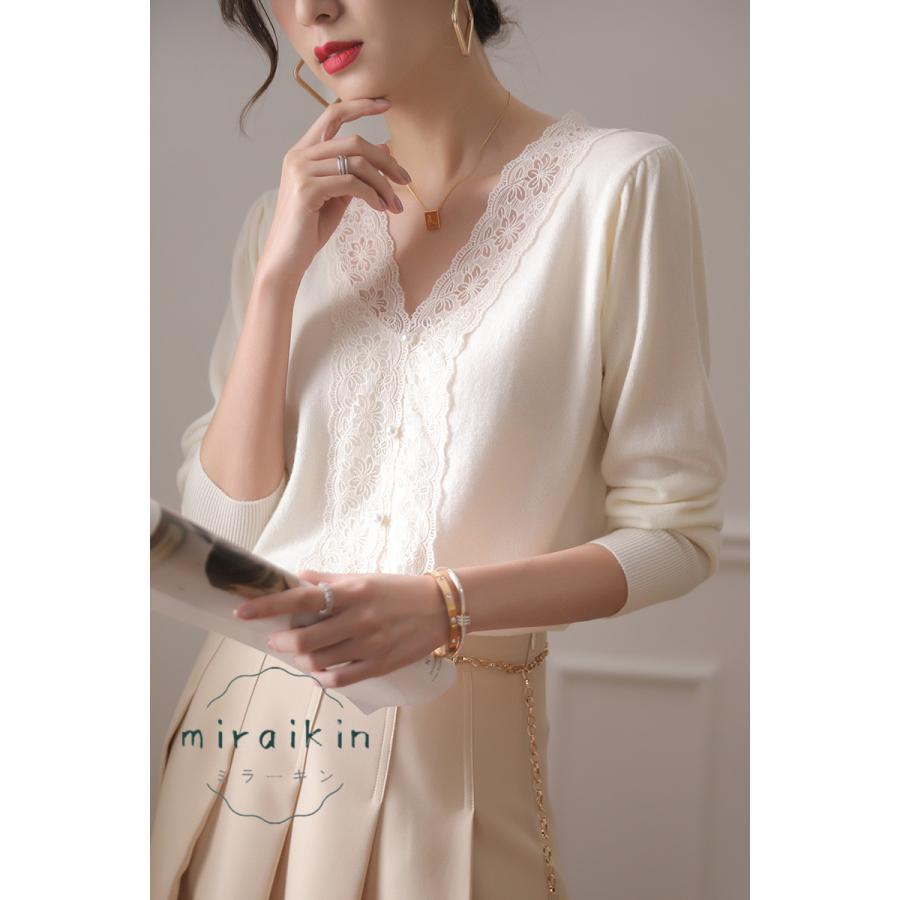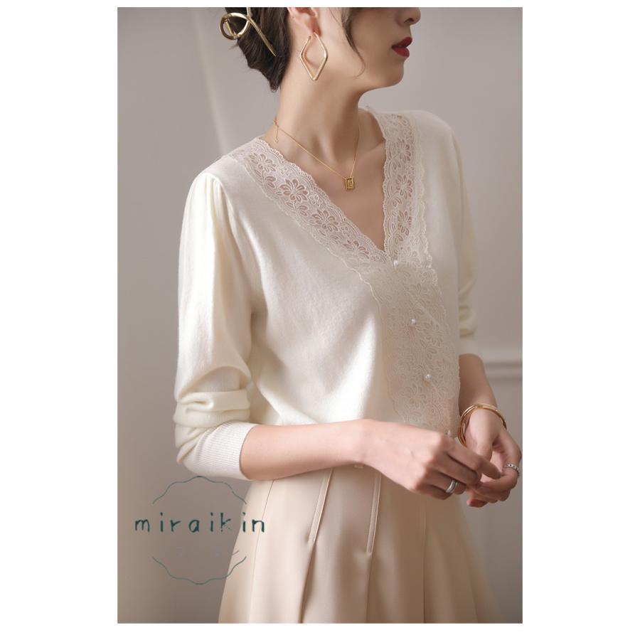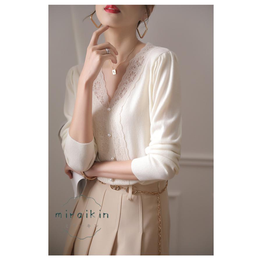 ニットトップス レディース 春 夏 春夏 黒 白 Vネック レース サマーニット セーター トップス ゆったり 長袖 ホワイト ブラック 体型カバー 30代