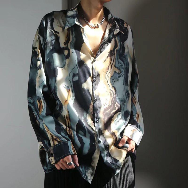 レトロシャツ メンズ 夏 長袖 ボタンダウンシャツ カジュアル ワイシャツ 個性ビジネス 通学 長袖シャツ 花柄 ゆったりトップス 通勤 開襟 シャツ 自由に選べる2枚セット