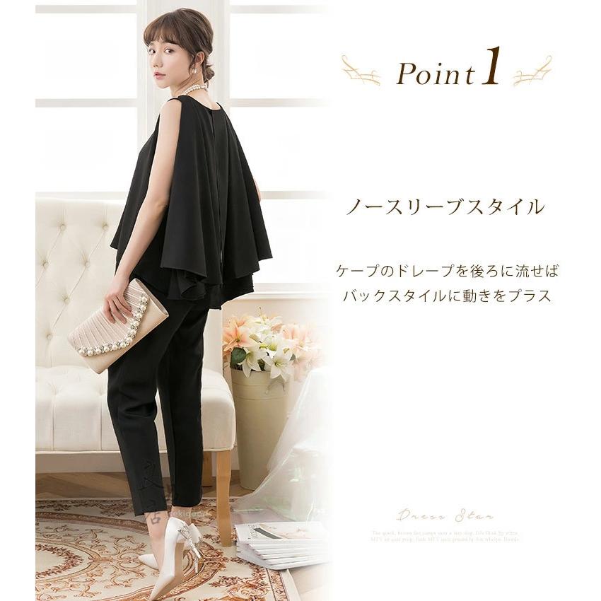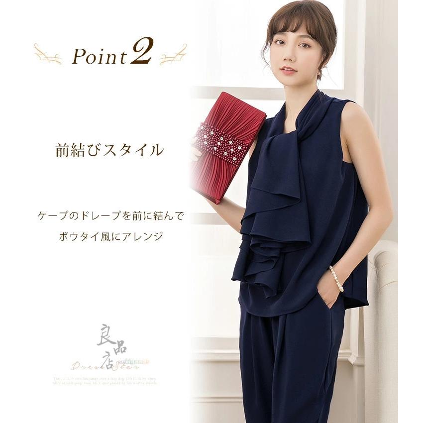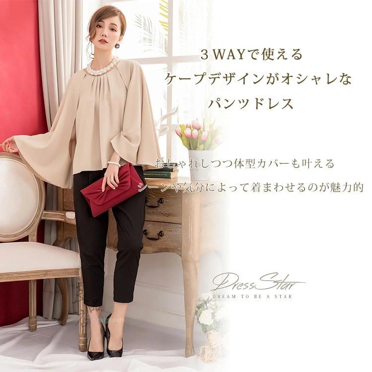 3WAYで使えるケープデザインがオシャレなパンツドレス。