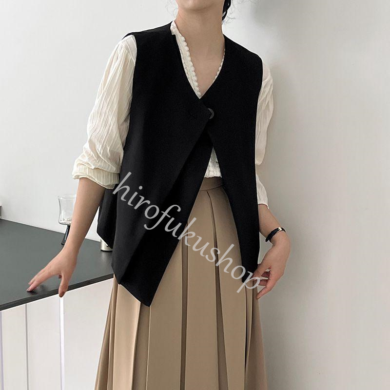 ジレ レディース ベスト 前開き ロング フォーマル シンプル 通勤 ノースリーブ フォーマル 無地 テーラード 仕事 OL