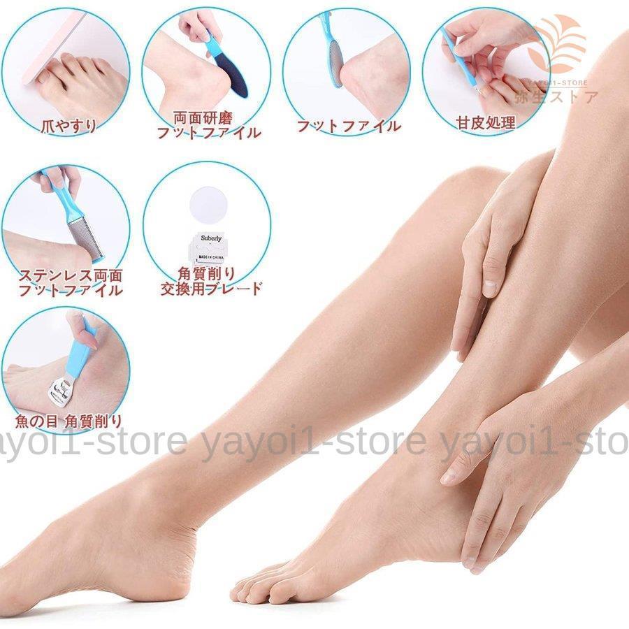 フットファイル かかと 角質取り フットケア プロ用ステンレススチール足ヤスリ ペディキュア用両面ヤスリ 魚の目削り あらゆる種類の角質の足に適しています