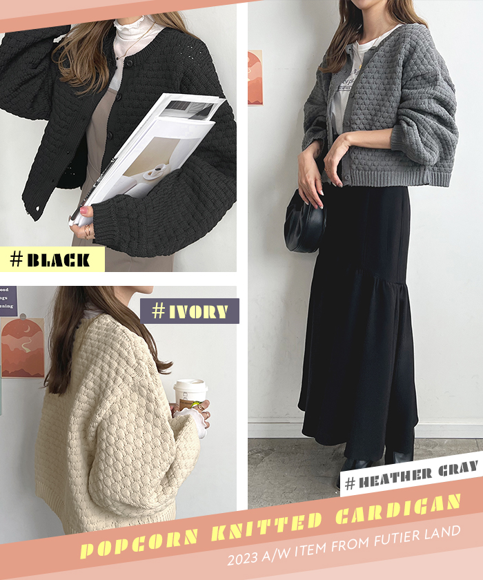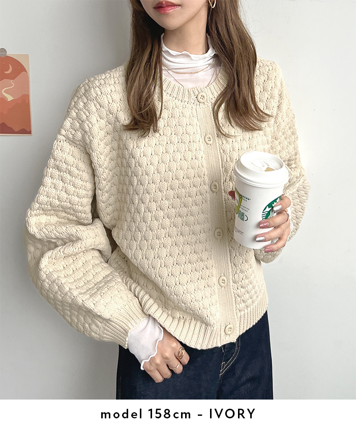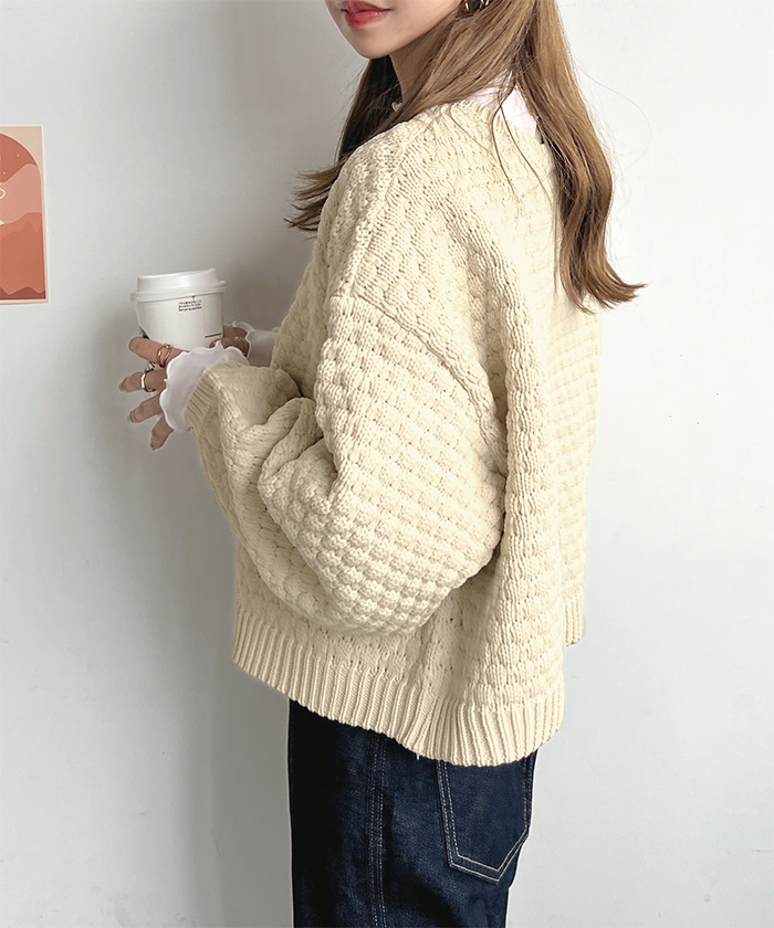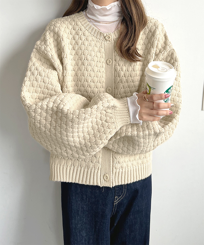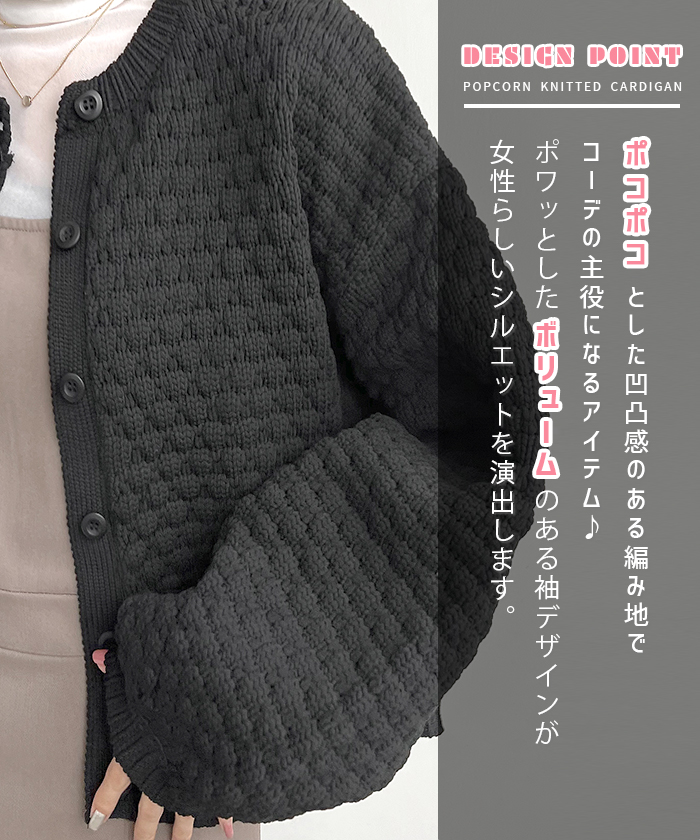 着回し自由自在♪凹凸感のあるポップコーン編みニットカーデ♪