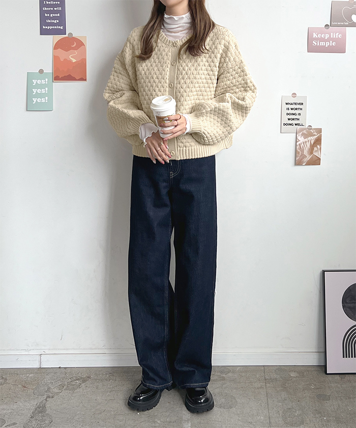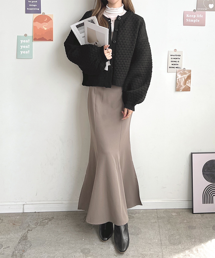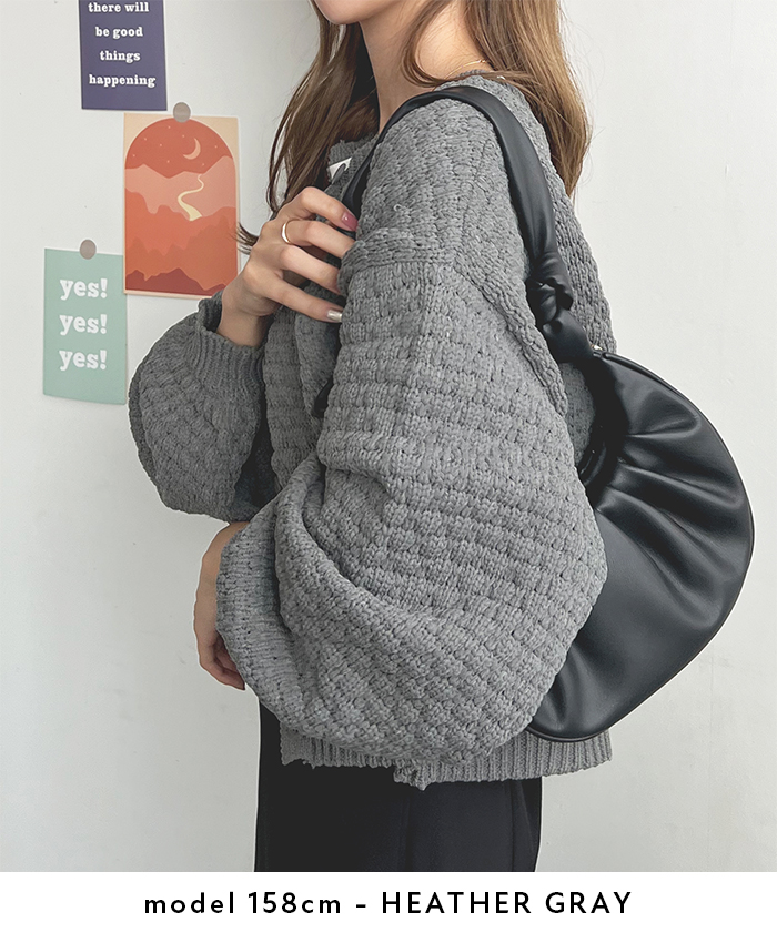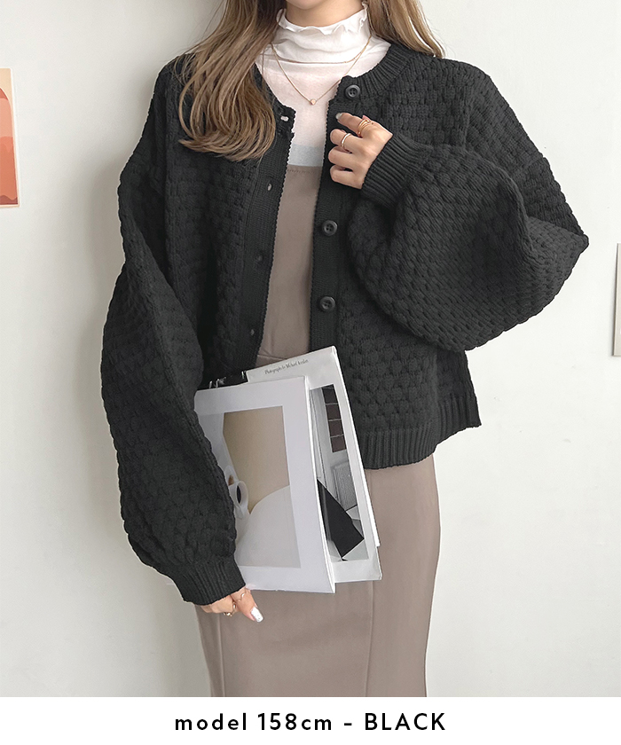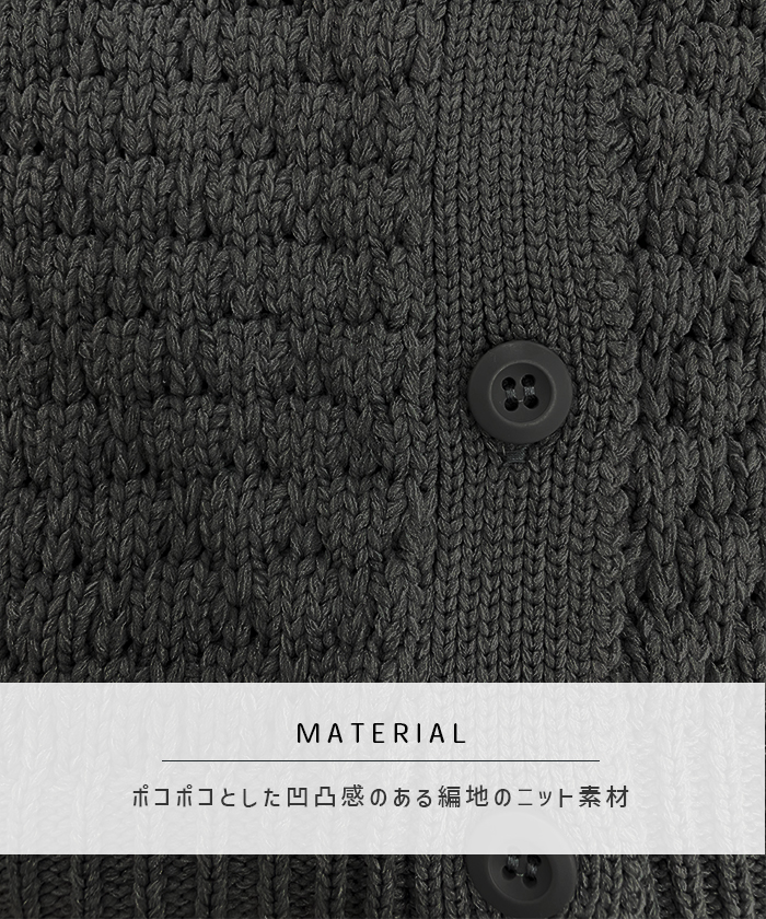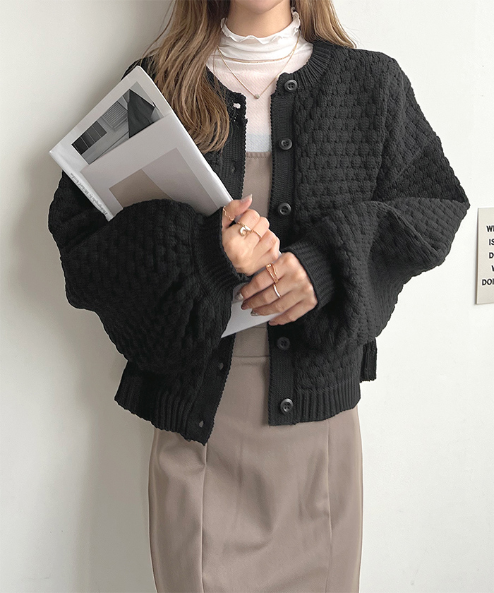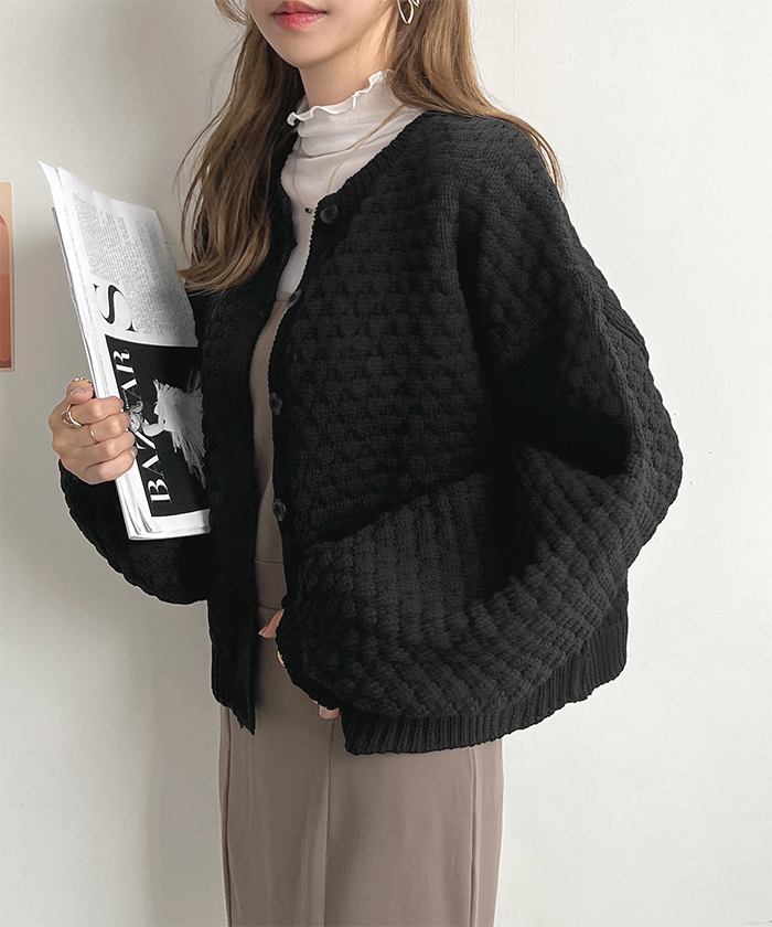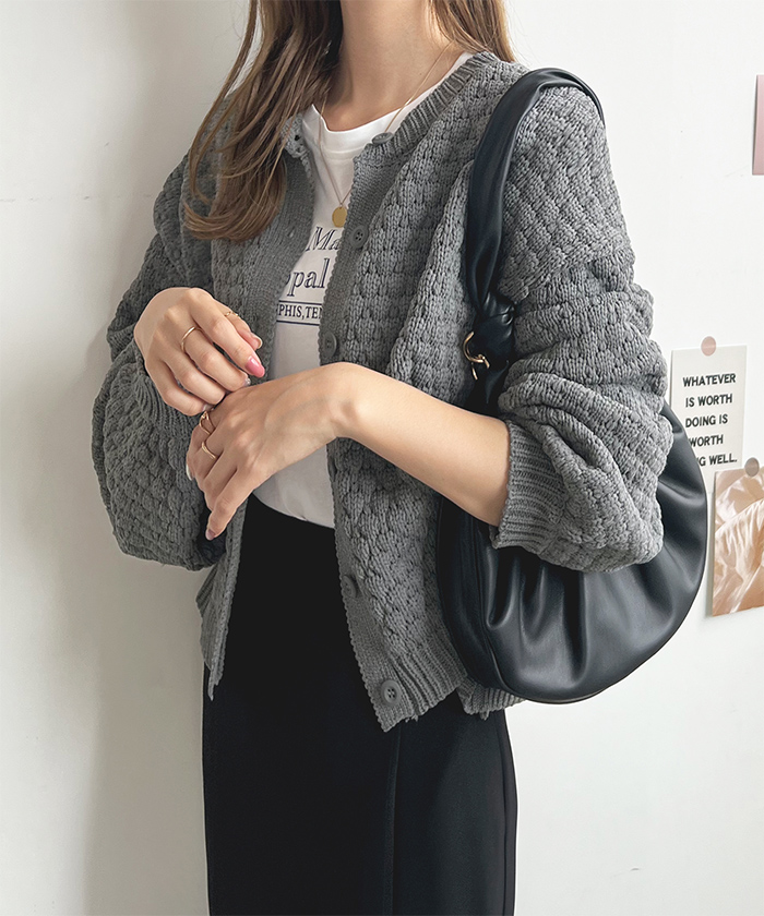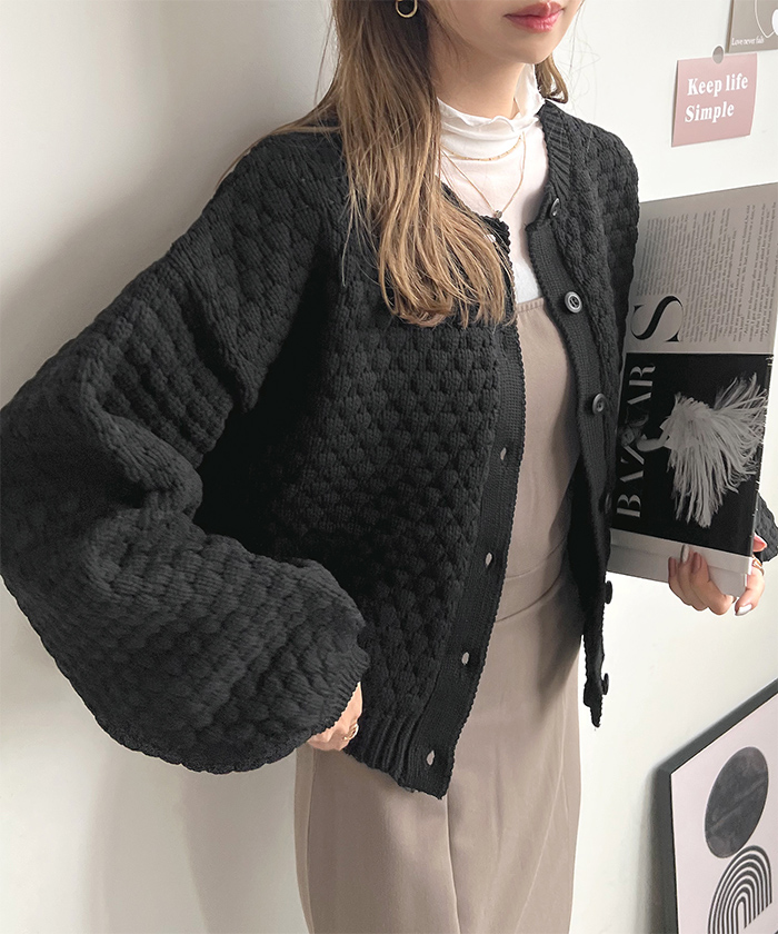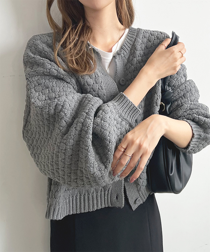 ポコポコとした凹凸感のある編み地でコーデの主役になるアイテム。