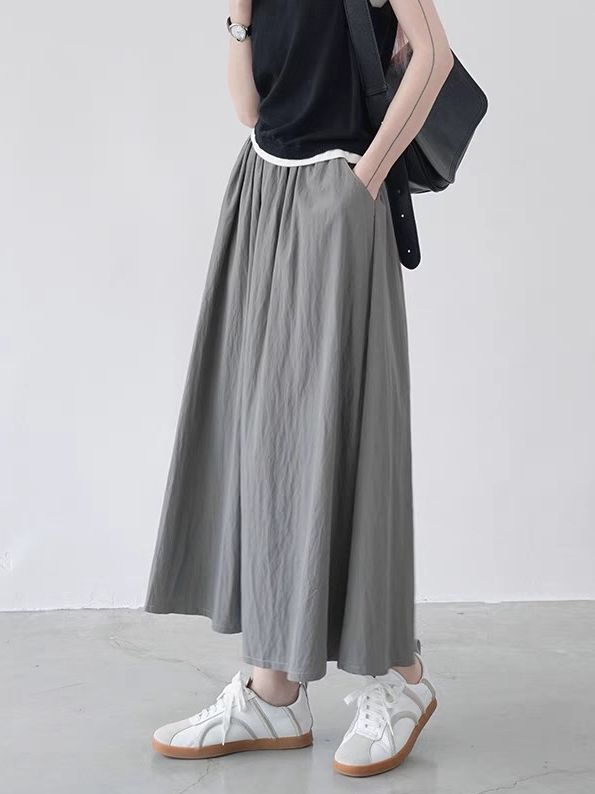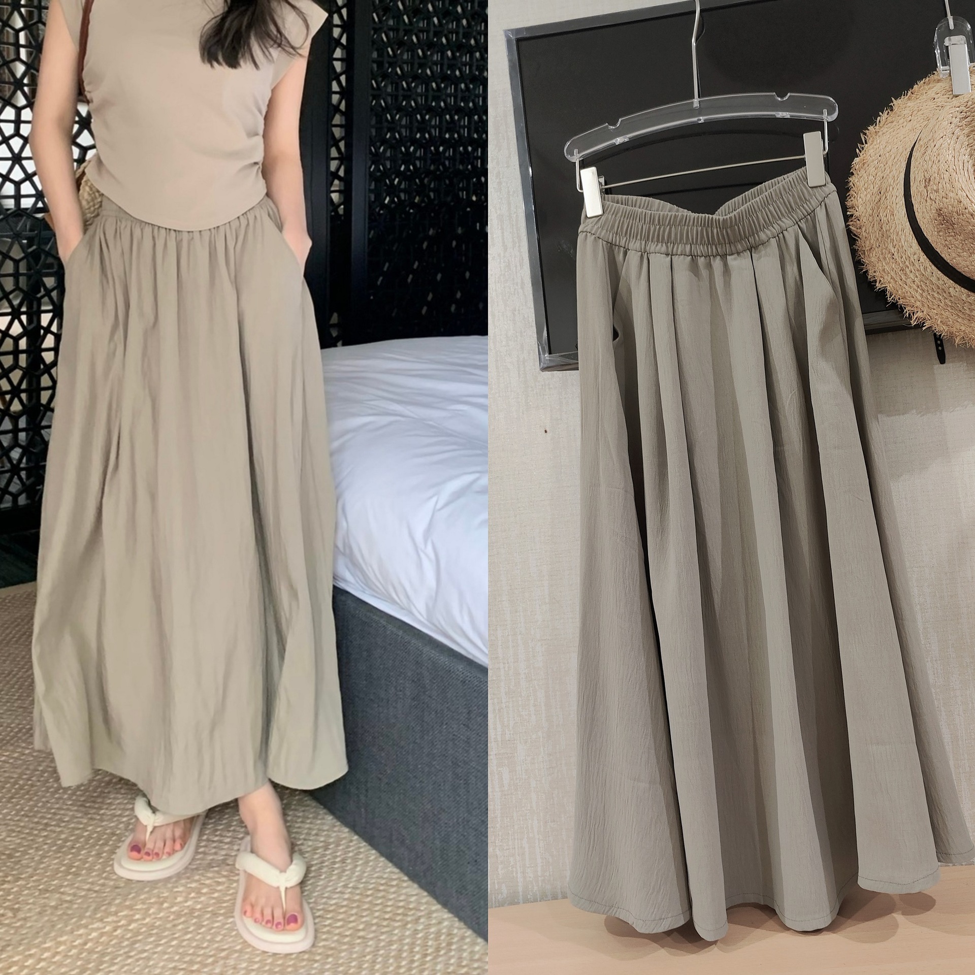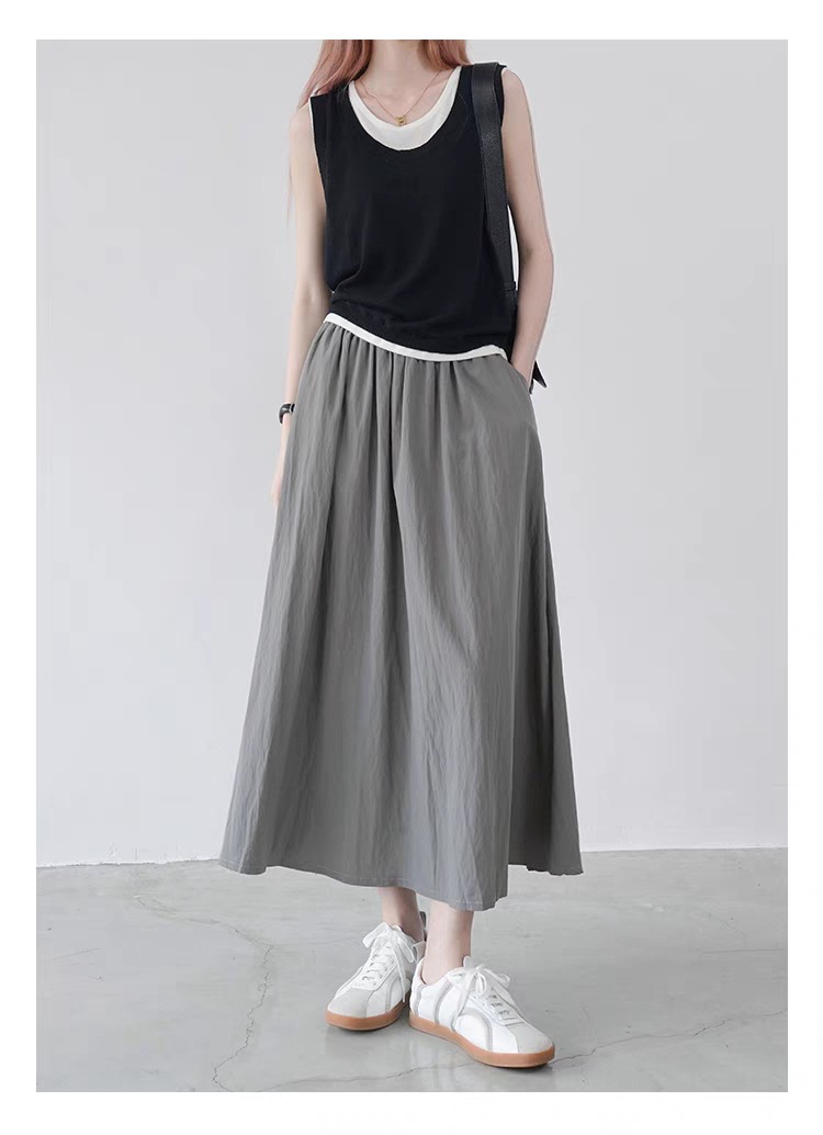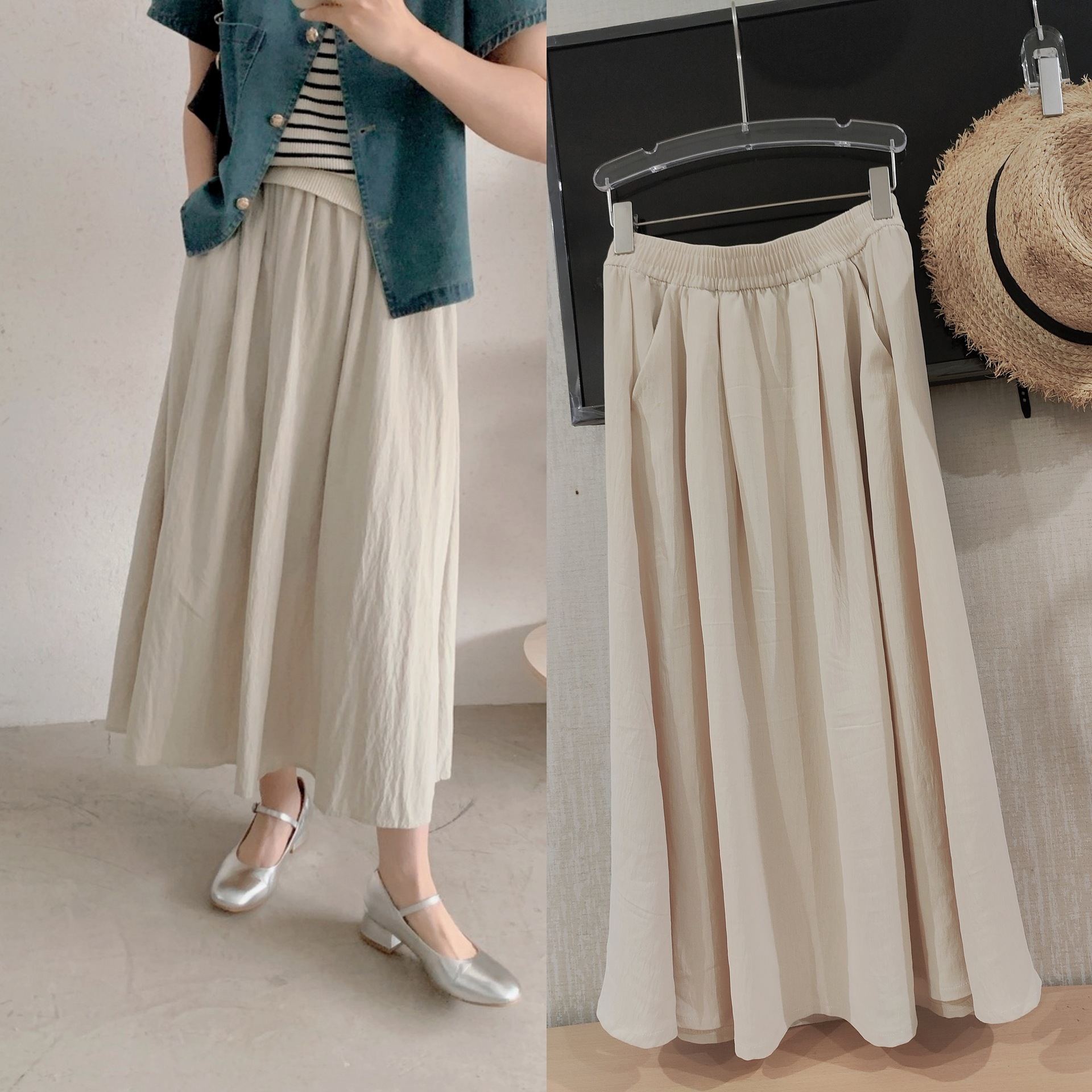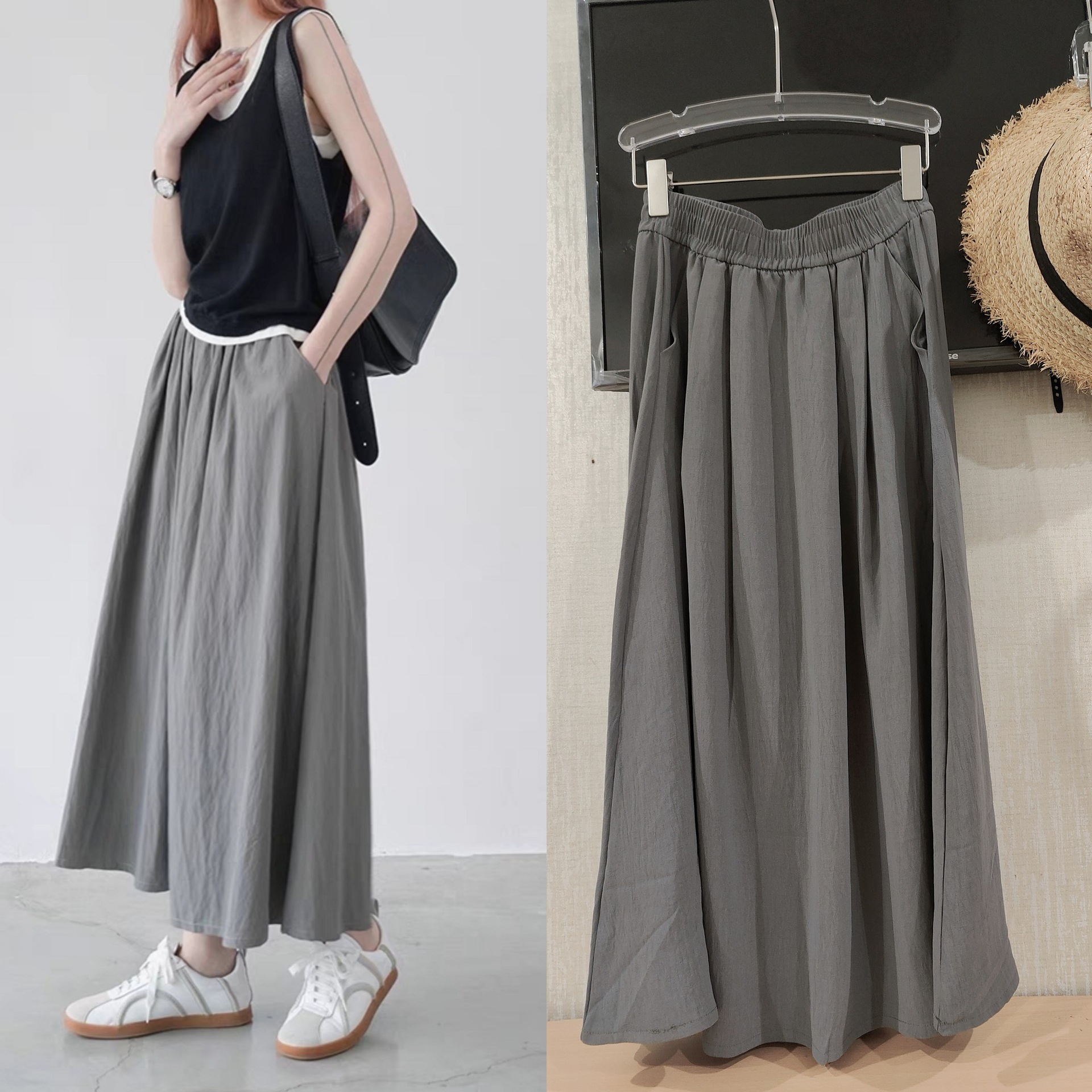 商品説明:マキシスカート 無地 きれいめ ゆったり 体型カバー 春夏 脚長効果