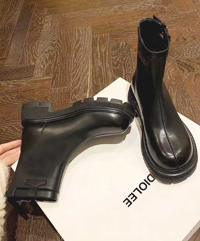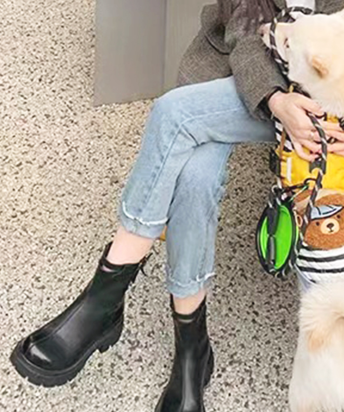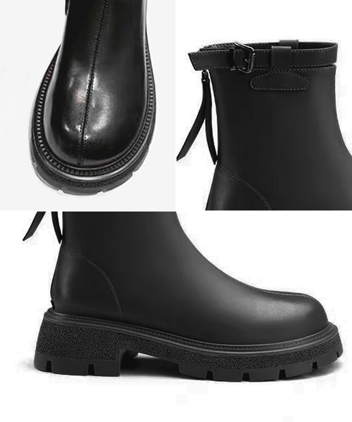 履き口のベルトデザインが周りと差をつける厚底ショートブーツ♪