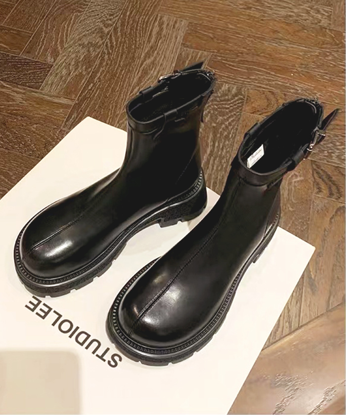 ブーツ レディース 秋 冬 ショートブーツ 厚底 シンプル 厚底タンクソールベルトショートブーツ ファッション 韓国 カジュアル 韓国コーデ