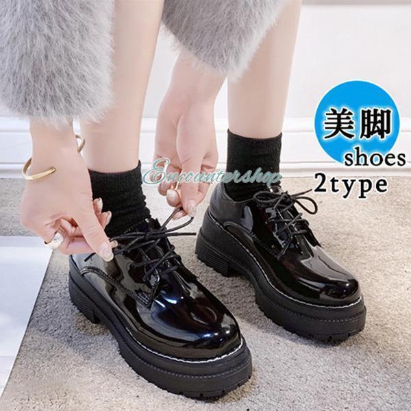 レディース 革靴 厚底ロ