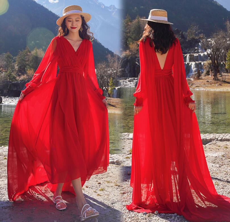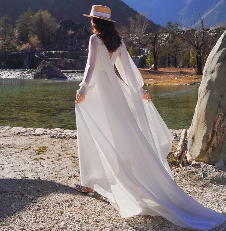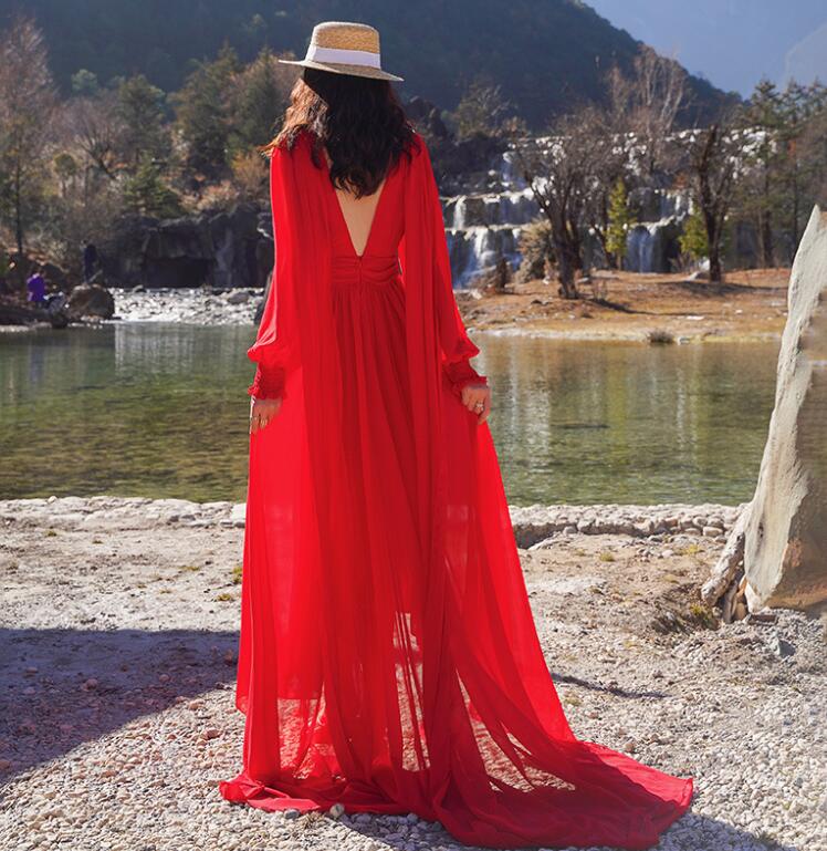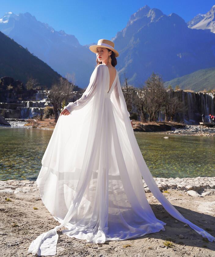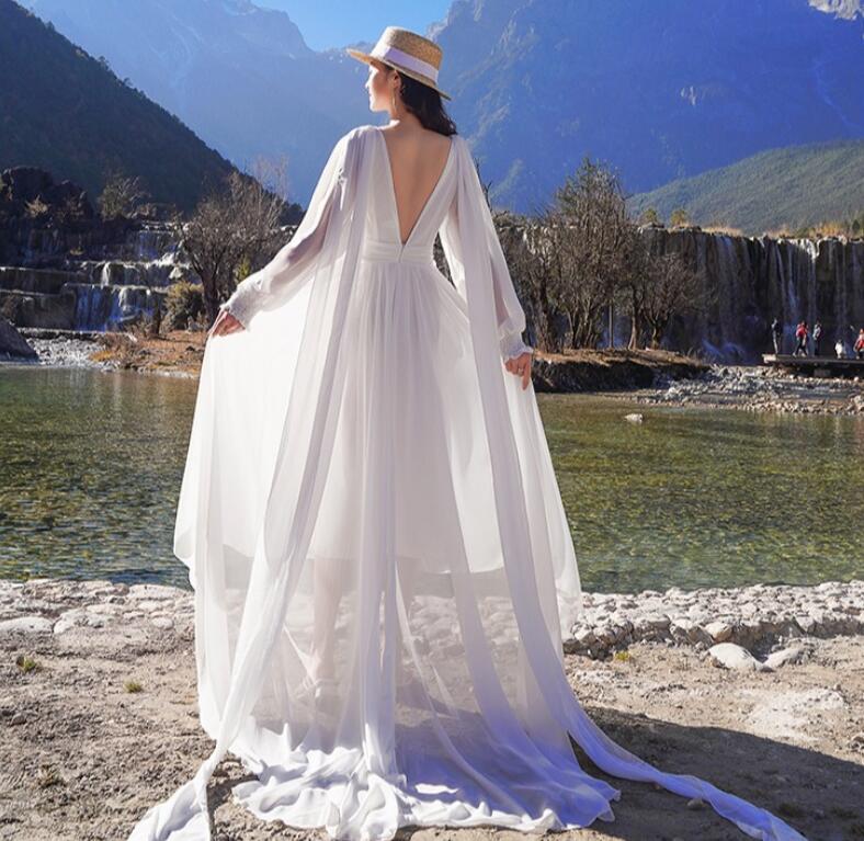 レディース ビーチドレス フィッシュテール ワンピース Vネック トレーン バックレス 海旅行用ドレス 演奏会 撮影写真 披露宴 ダンスウェア