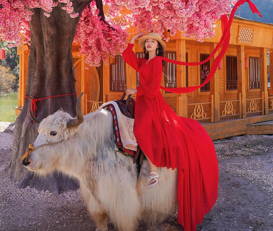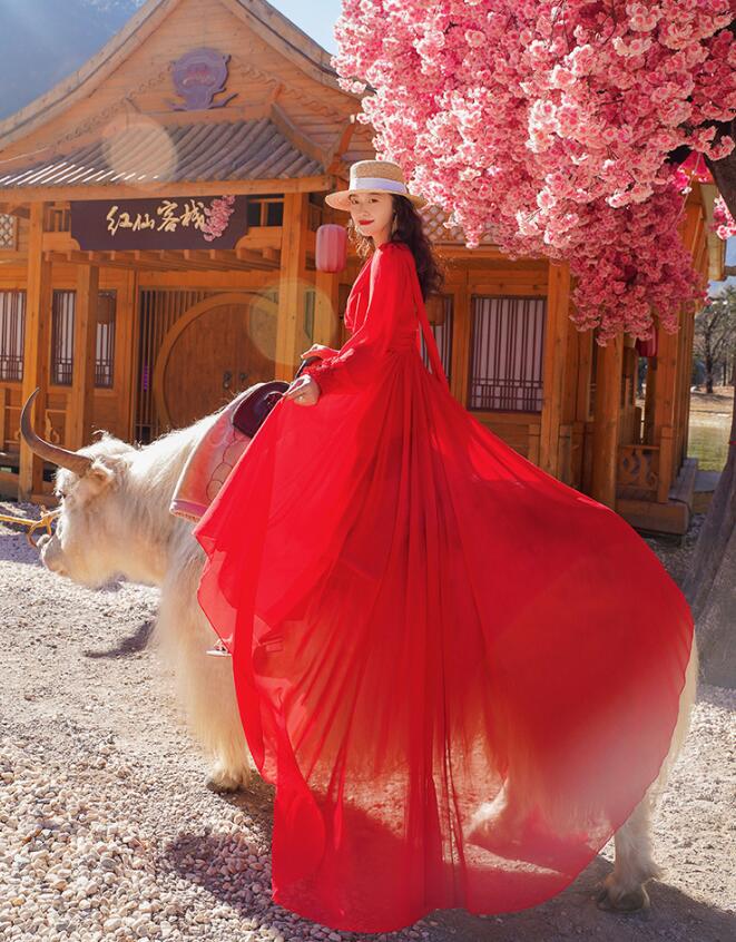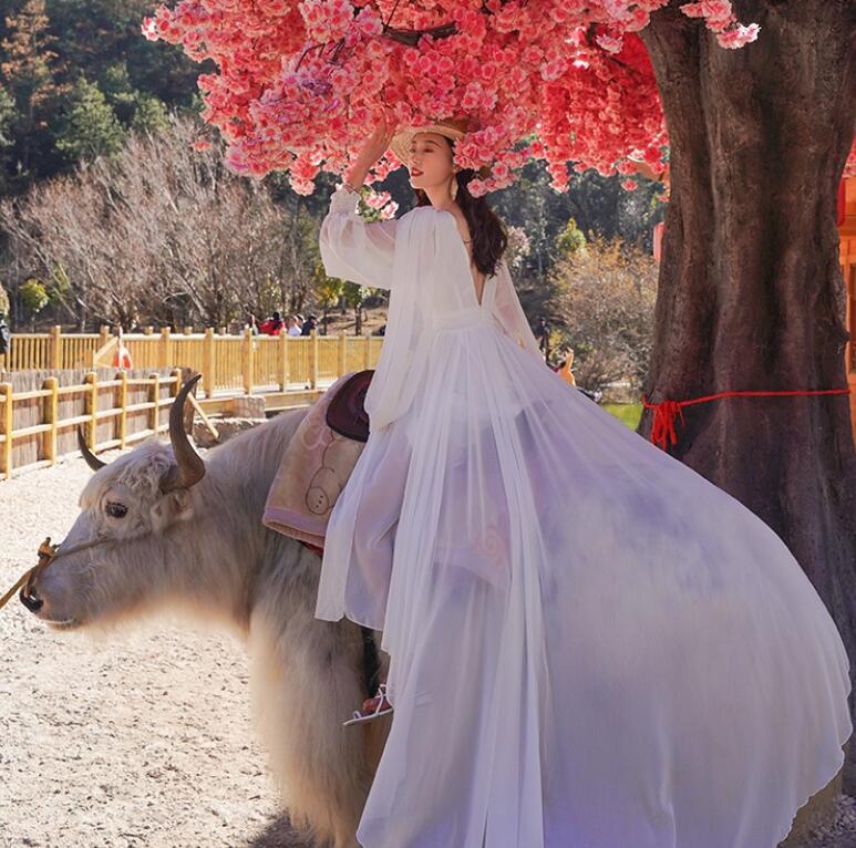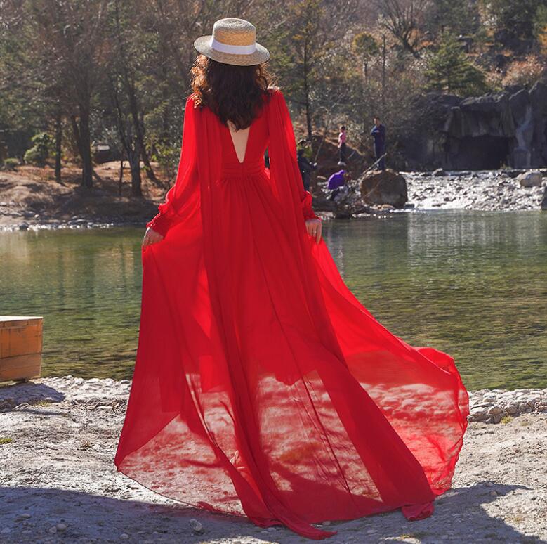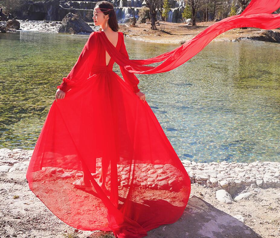 レディース ビーチドレス フィッシュテール ワンピース Vネック トレーン バックレス 海旅行用ドレス 演奏会 撮影写真 披露宴 ダンスウェア