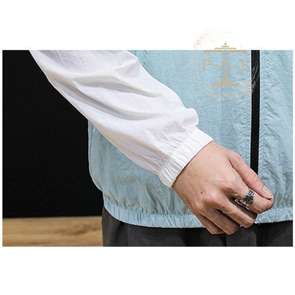 男性用のおしゃれなウインドブレーカーが登場!見た目だけでなく、機能性にもこだわったアイテムです。フロントはジッパー構造で風を防ぐことができます。風を通しにくい防風効果を施し、紫外線遮断できます。