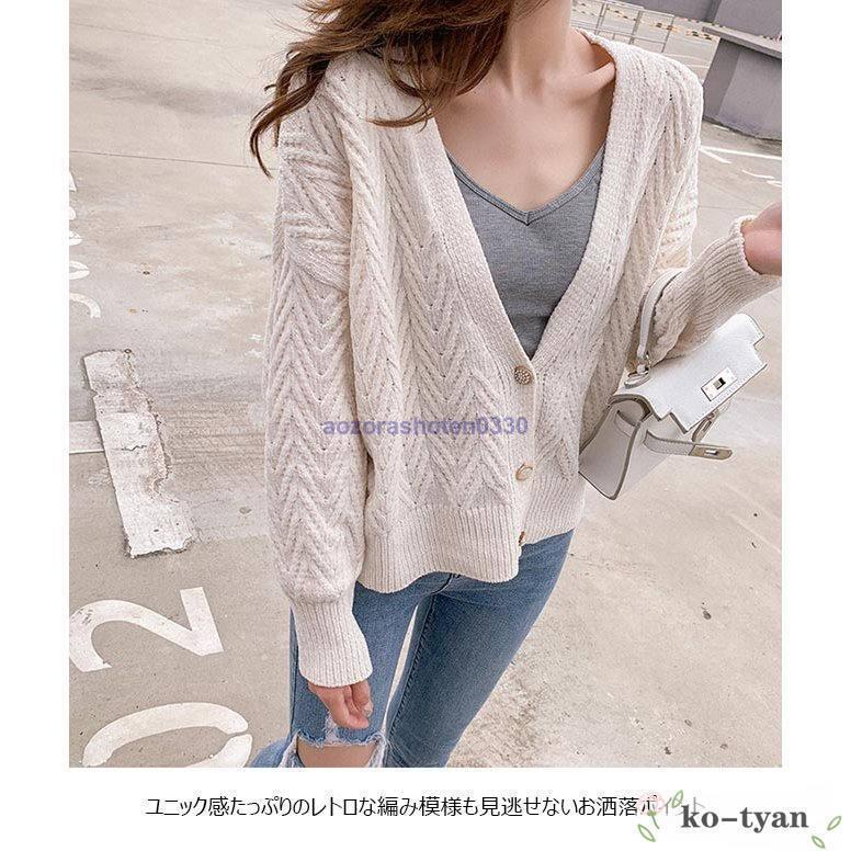 カーディガン レディース ニットカーディガン Vネック コーディガン ボタンカーディガン レトロ ニットコーディガン 編み模様 春秋 通勤