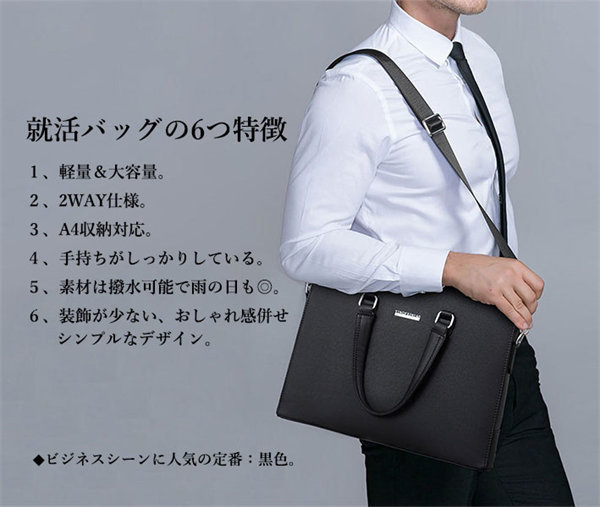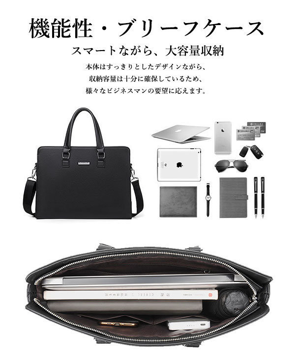 ビジネスバッグ メンズ 合皮 レザー 2WAY 軽量 A4収納 ショルダー付き自転車通勤 1-2泊 出張 大きめ 40代 バック PC対応 鞄 撥水 大容量 50代 おしゃれ