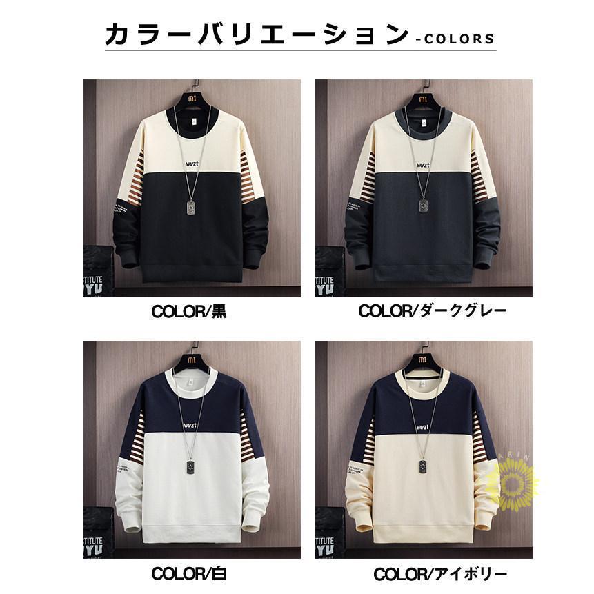 トレーナー 長袖 メンズ プルオーバー カラー切替 トップス スウェットシャツ 丸首 ロンT 春 秋 メンズファッション 春服 秋服 切り替え 通学 カジュアル お洒落