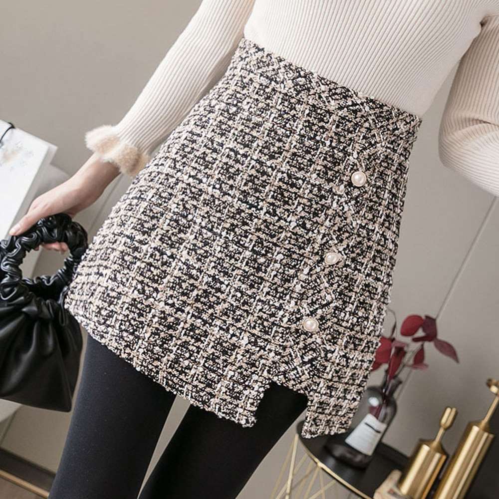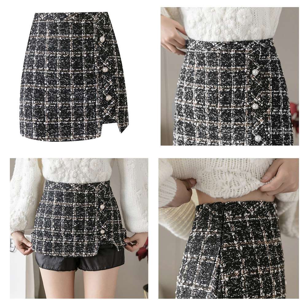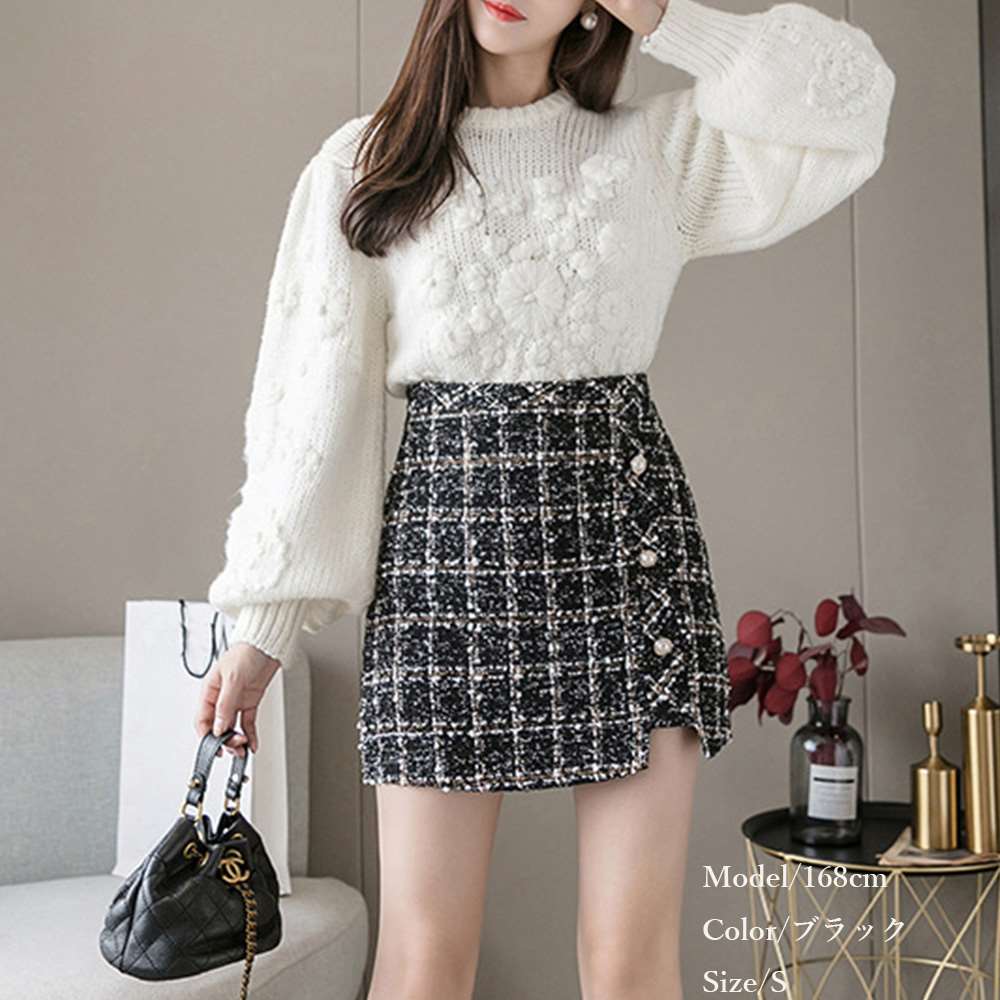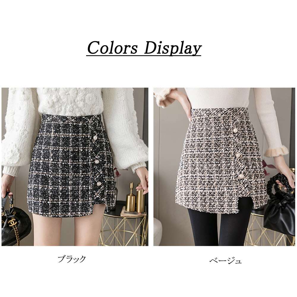 まるでスカートのように見えるシルエットで、実は大人可愛いショートツイード丈スカート