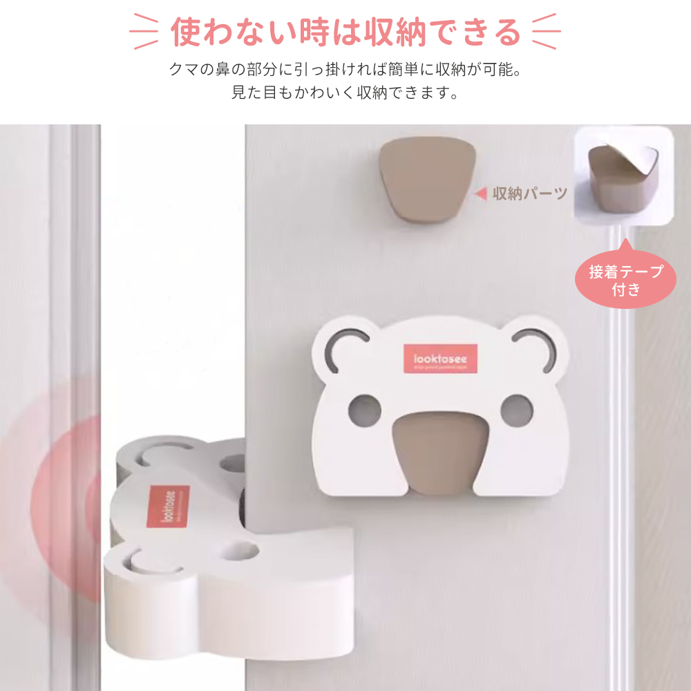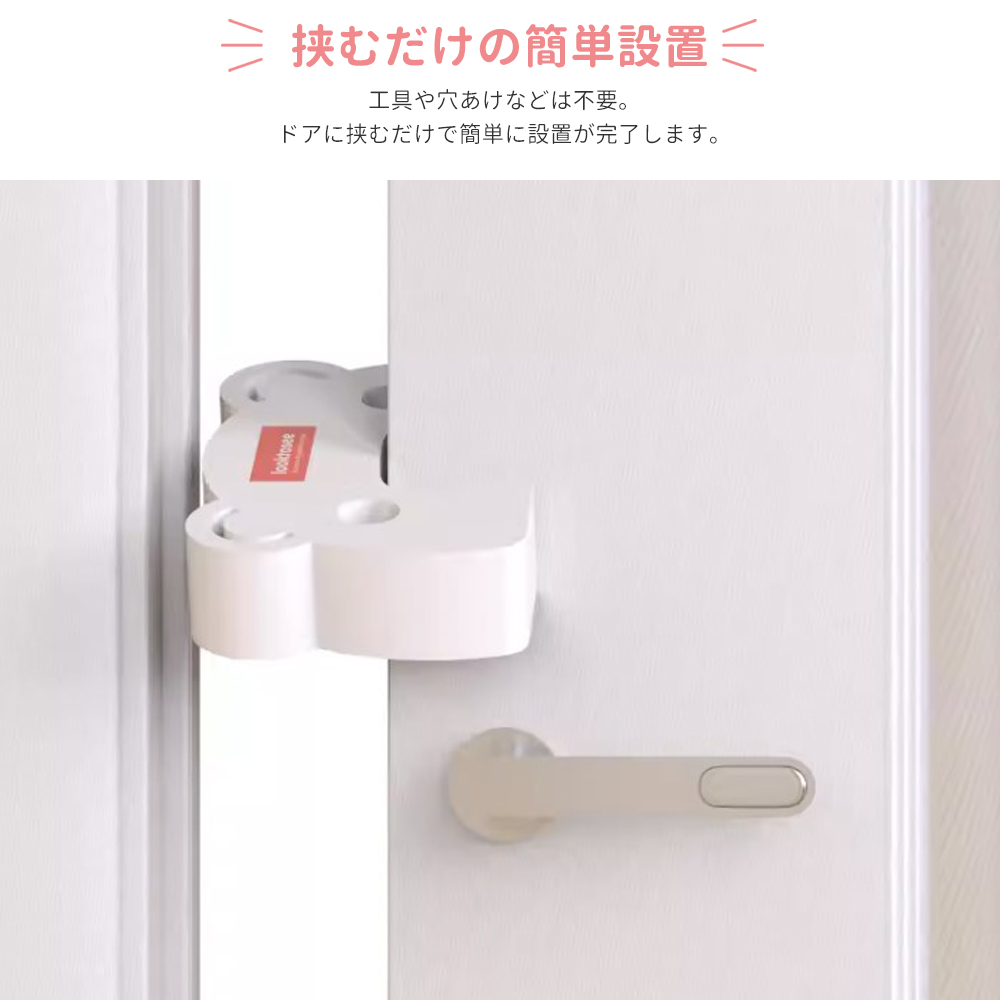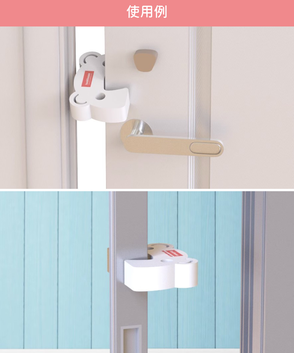 ※ ドアクッションとして使用する際、お子さまの手の届かない十分な高さ、または、ドア上綿の角から15CM以上のところに取り付けてください。