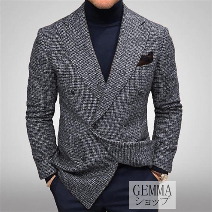 ジャケット メンズ 秋冬 新作 格子縞 チェック柄 ジャケット 着痩せ 細身 通勤 ビジネス グレー グリーン ブラウン S~3XL