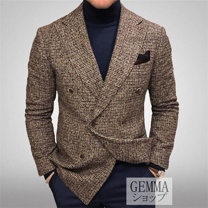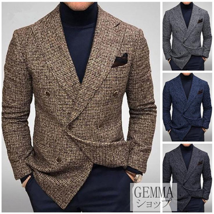 送料無料 ジャケット メンズ 秋冬 新作 格子縞 ブラウン 細身 着痩せ チェック柄 ビジネス 通勤 グリーン グレー ジャケット
