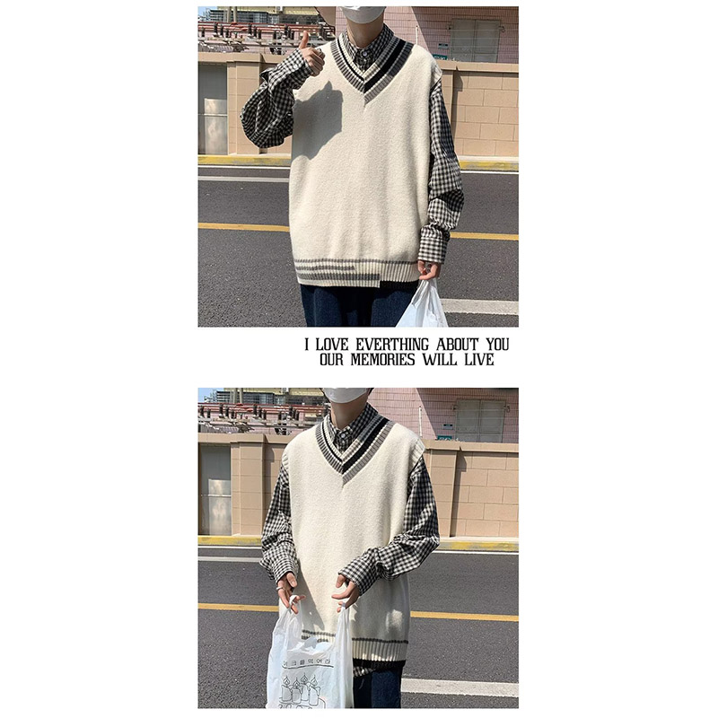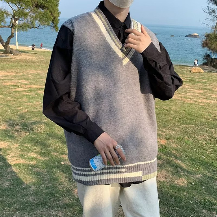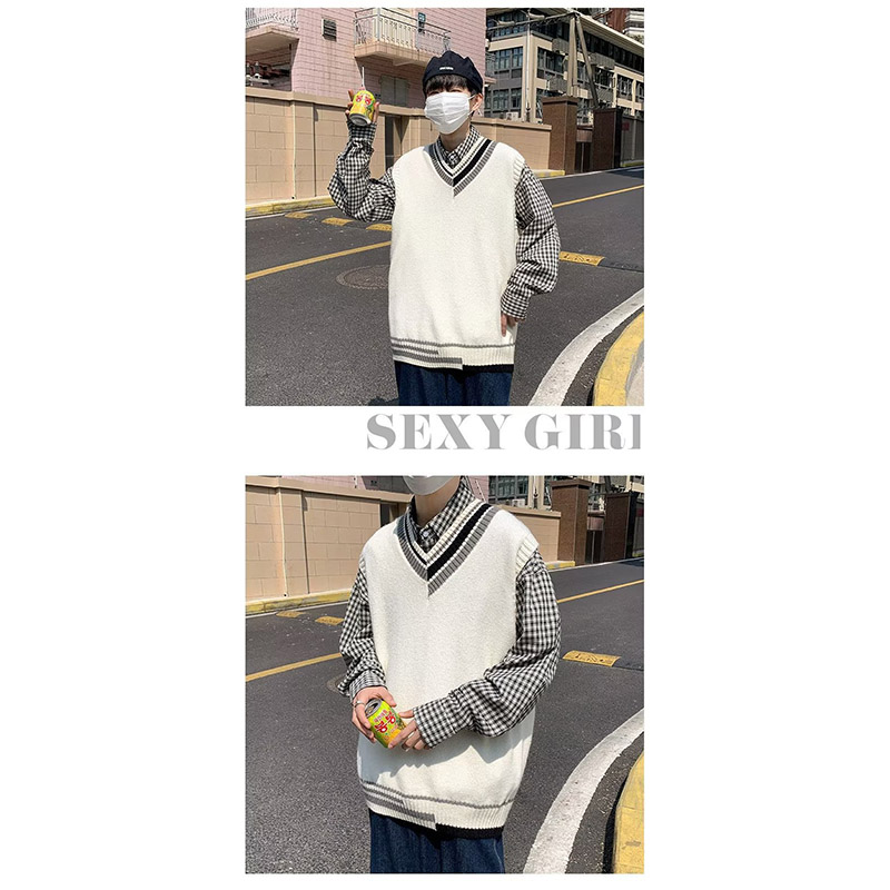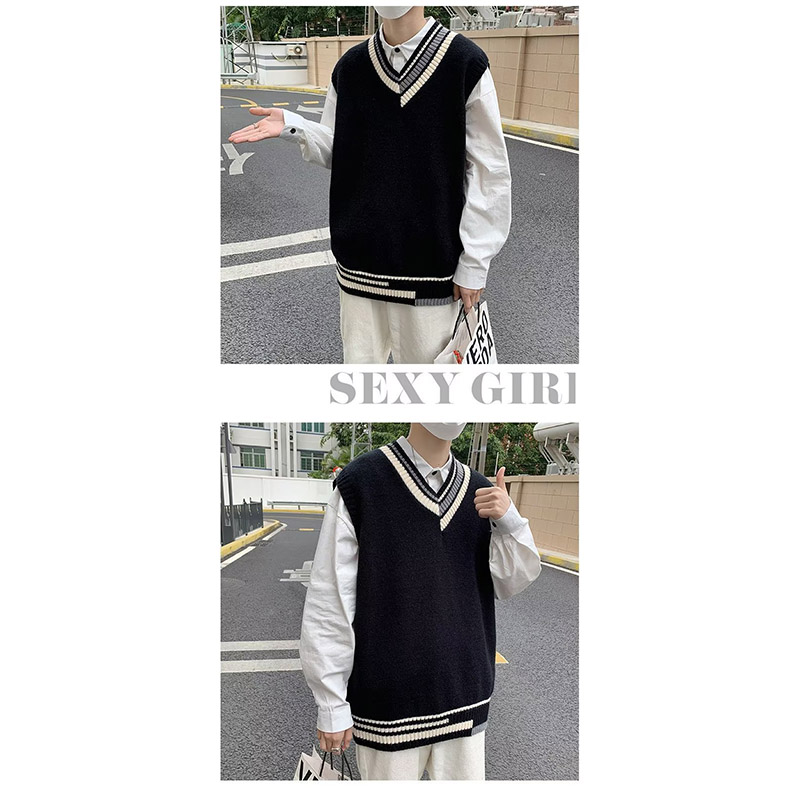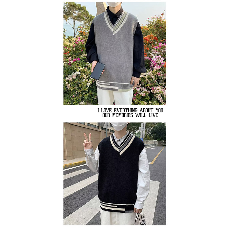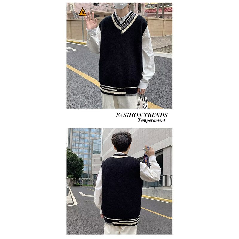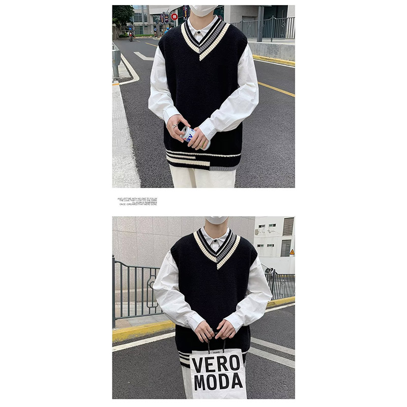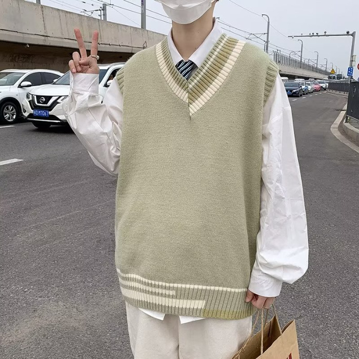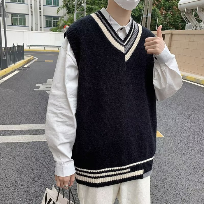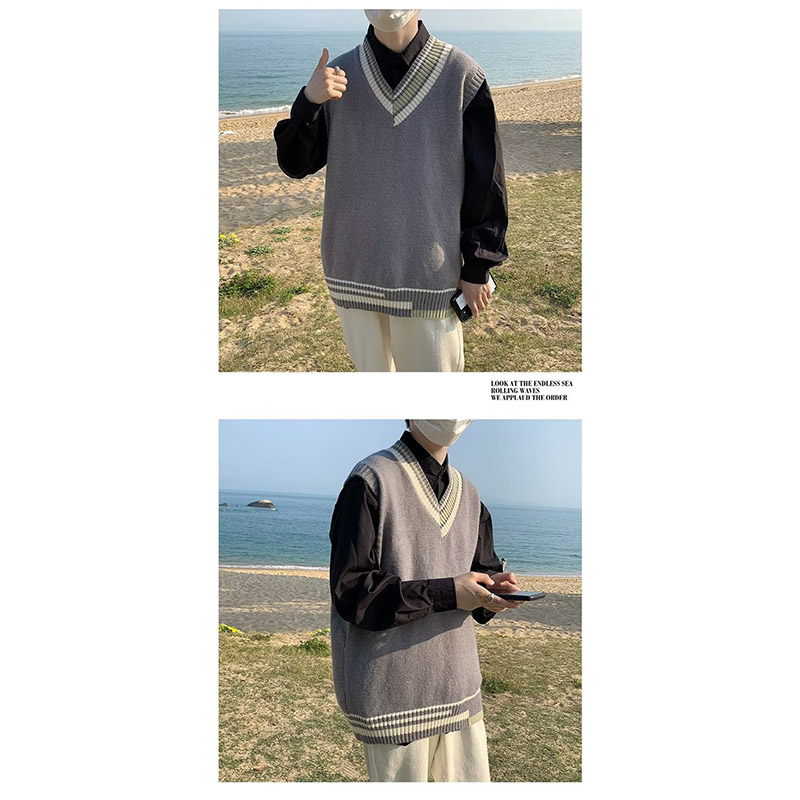 ニットベスト メンズ プルオーバー 袖なし ベスト Vネック ニット 学生 アウター トップス スクール 男子 通勤 オシャレ 通学 冬 秋 ゆったり カジュアル