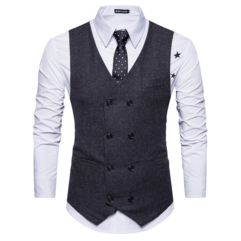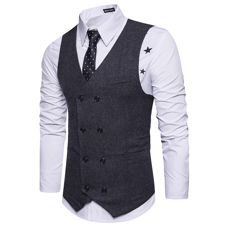 フォーマル ベスト メンズ ジレベスト スーツ生地 ダブルボタン チョッキ スーツ仕立て ベスト ビジネス スーツベスト Vネック ファッション スリム 結婚式