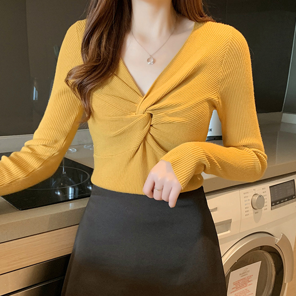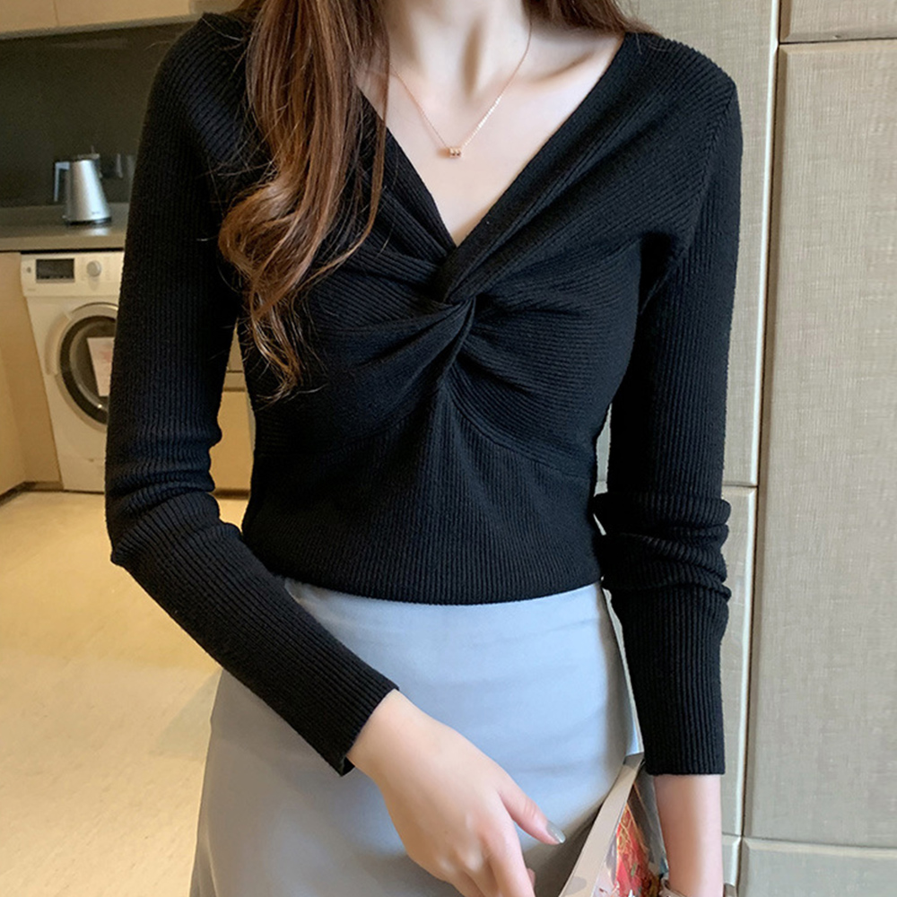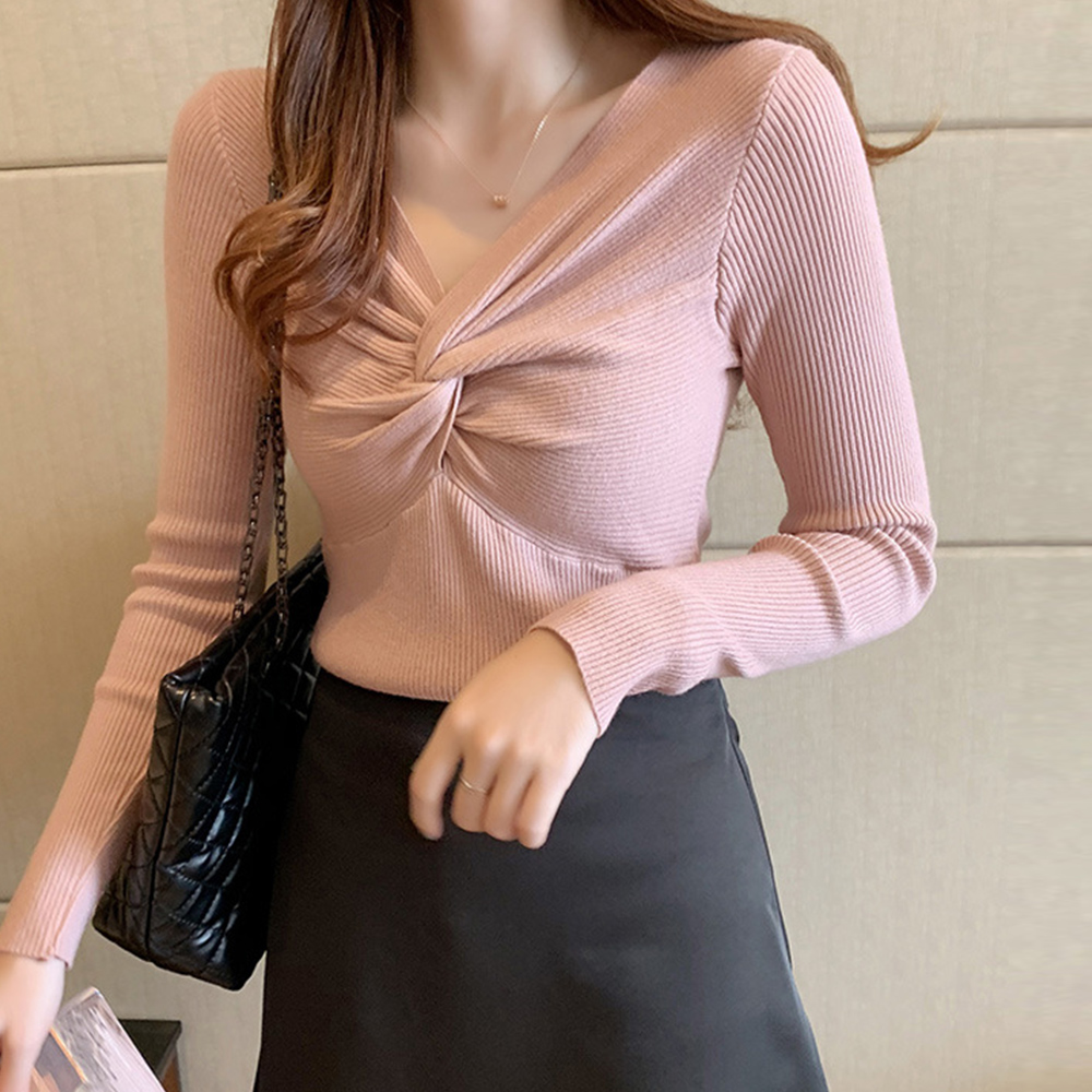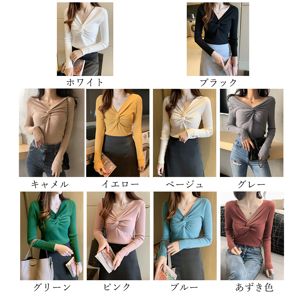 胸元のひねりデザインが特徴的でとっても洒落なニットトップスです