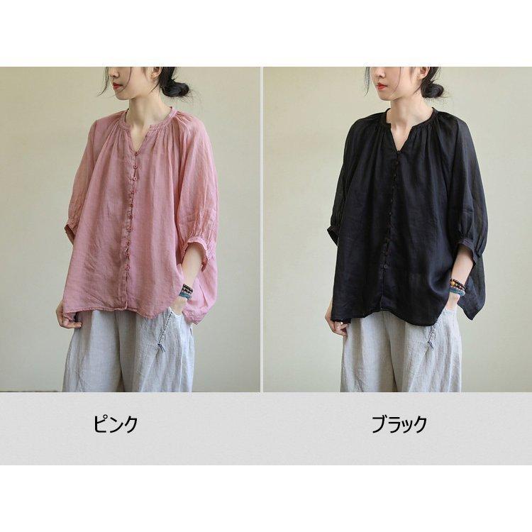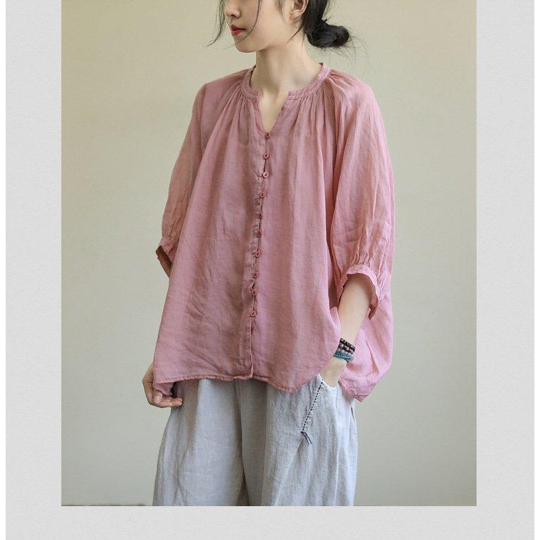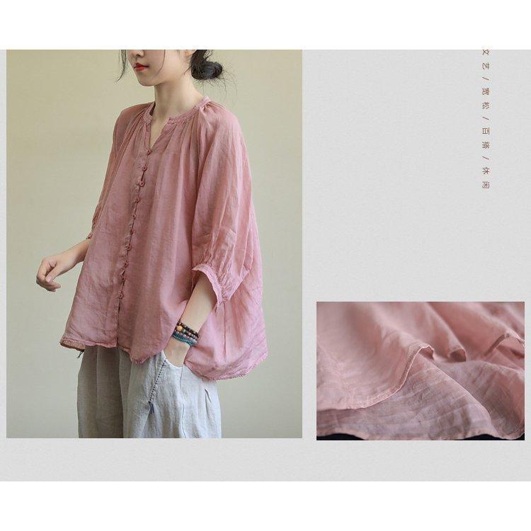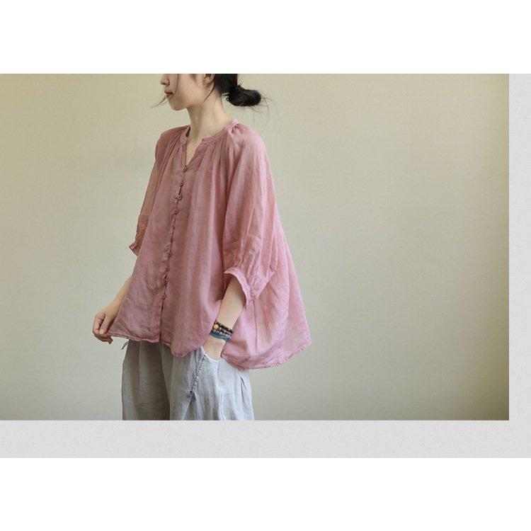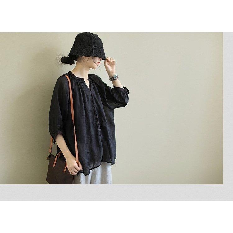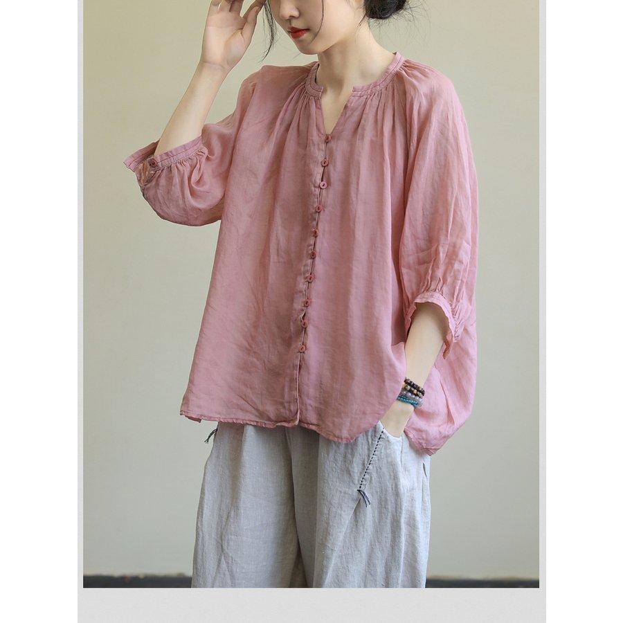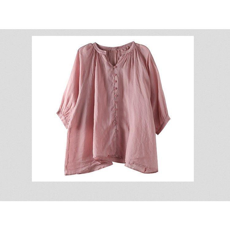 ブラウス レディース 40代 春夏新作 オシャレブラウス リネンシャツ カジュアル Vネック 無地 七分袖トップス 50代 通勤OL シャツ 大人 ゆったり 上品 30代