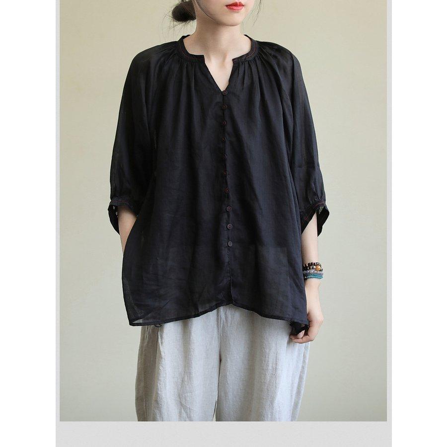 連携キーワード:ブラウス レディース 40代 春夏新作 オシャレブラウス リネンシャツ 七分袖トップス Vネック 無地 上品 大人 通勤OL ゆったり シャツ カジュアル 30代 50代