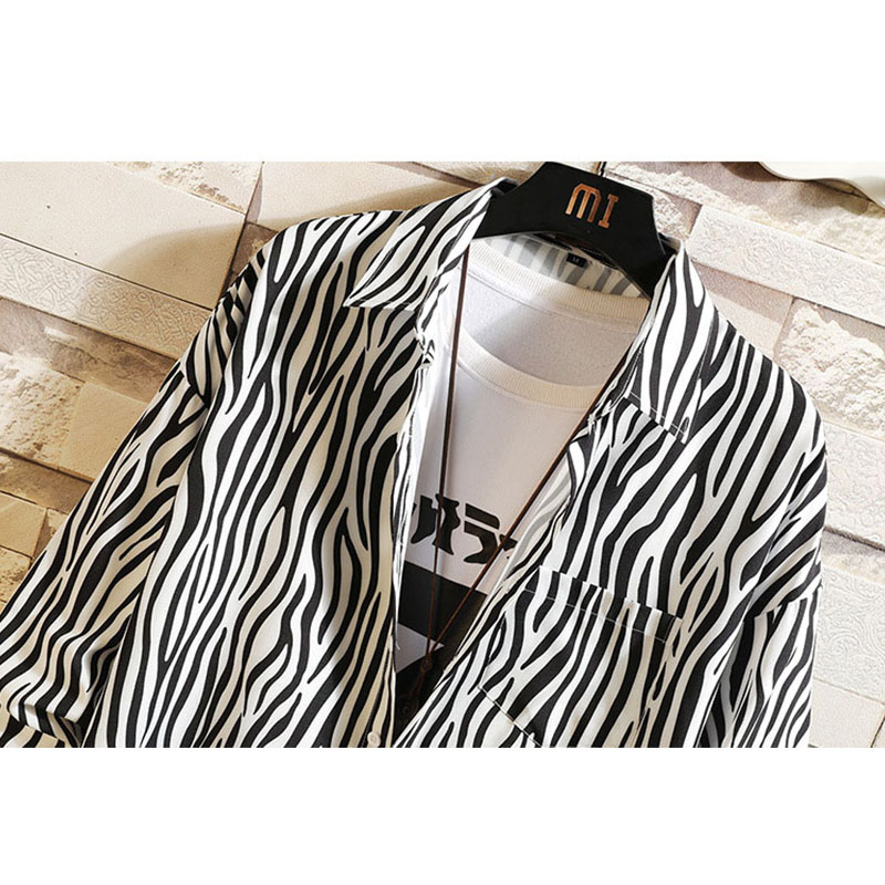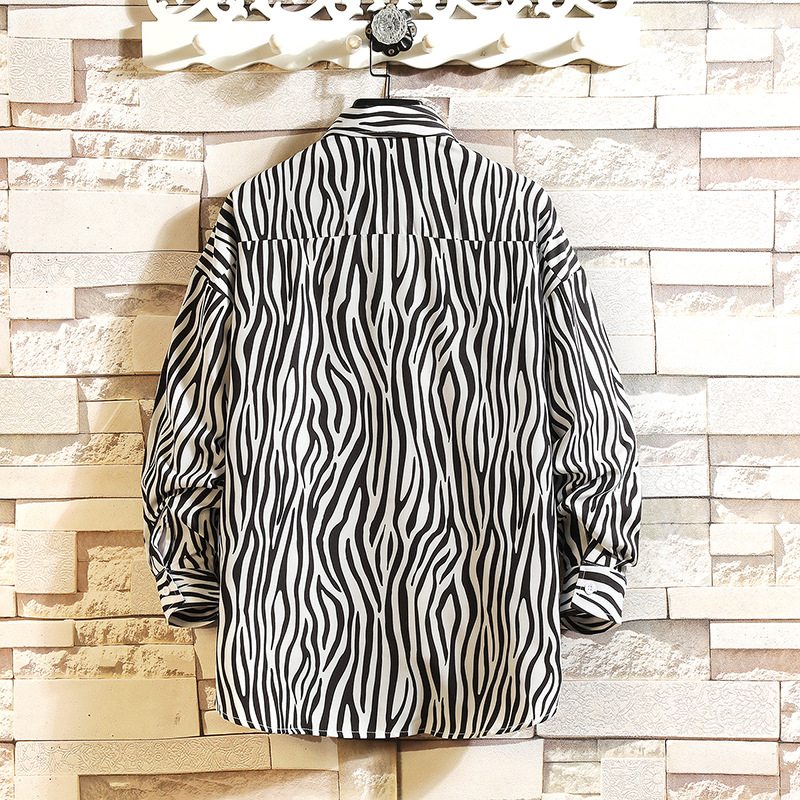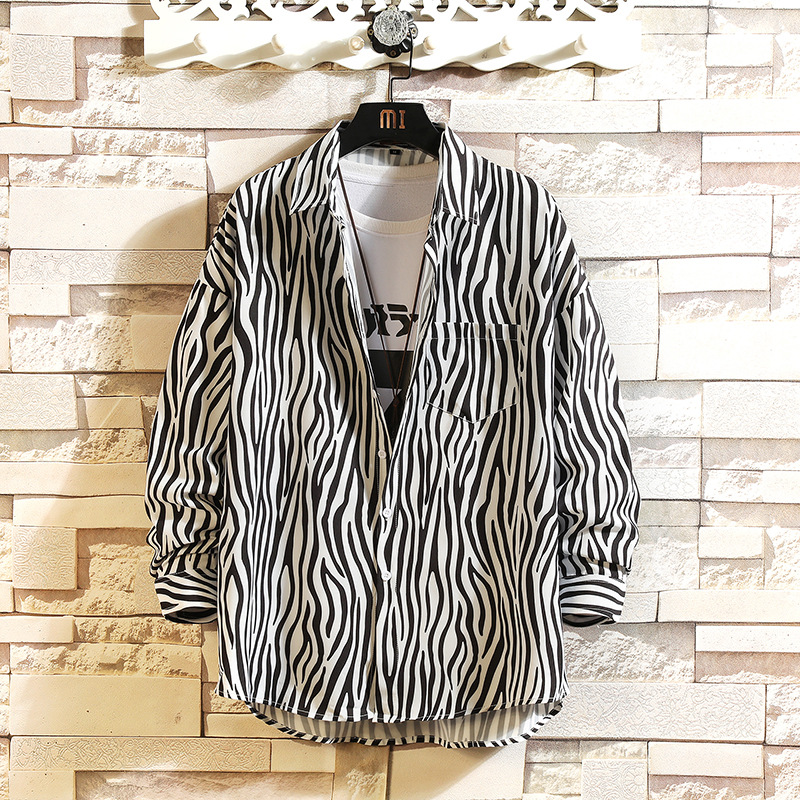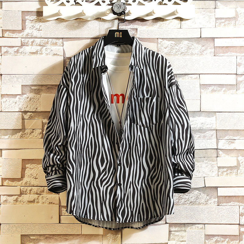 長袖シャツ メンズ カジュアル スリム 40代 50代 シマウマ柄 シャツ トップス ルームウェア お兄系 春物 秋服