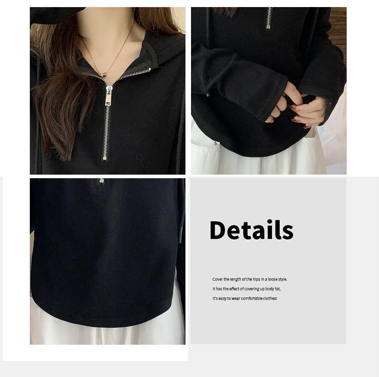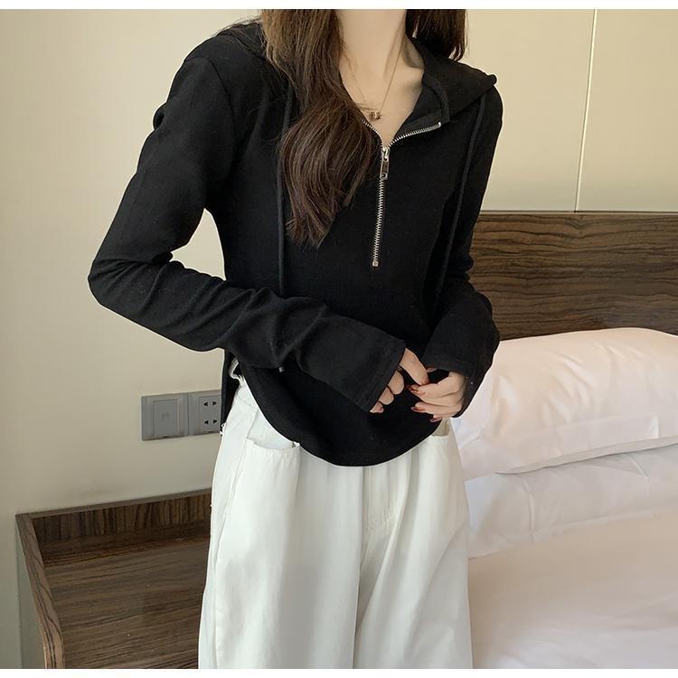 商品名:長袖 パーカー レディース プルオーバー ハーフジッパー トップス 長袖Tシャツ 春秋 ショート丈 カットソー シンプル 着まわし 細身 韓国ファッション