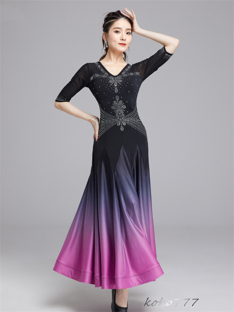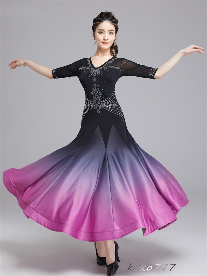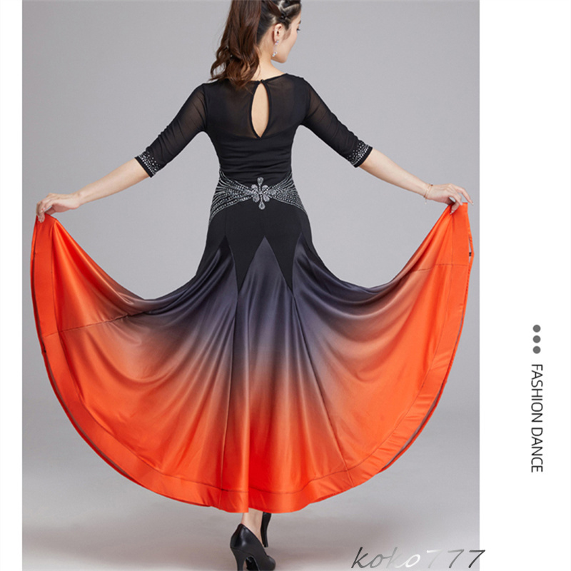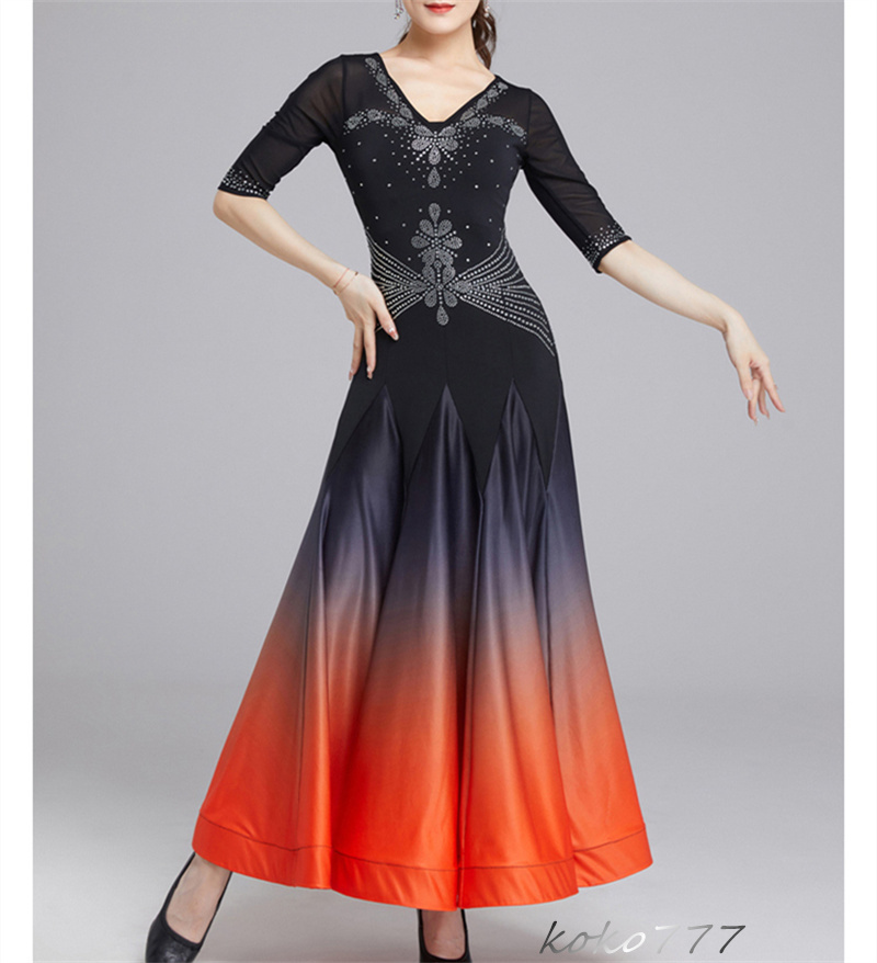 ロングドレス レディース ワンピース ダンスウェア カラードレス パーティー 舞台衣装 発表会 洋服 ラテンモダンダンス コスチューム ワルツ 社交ダンス 公演