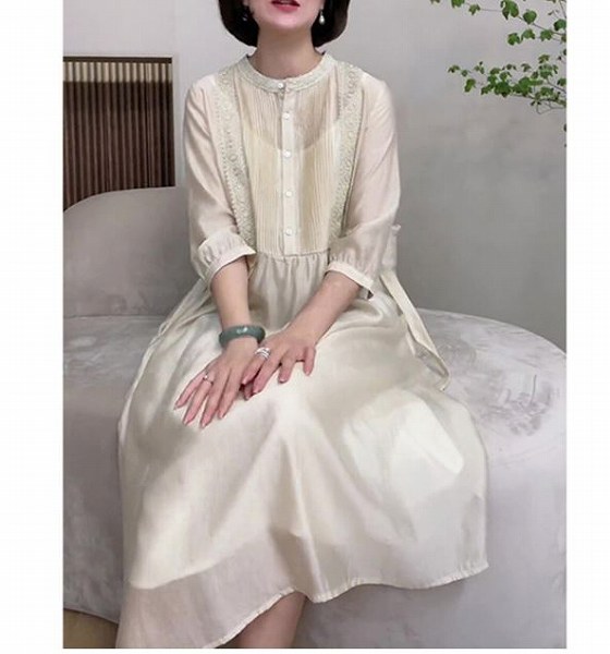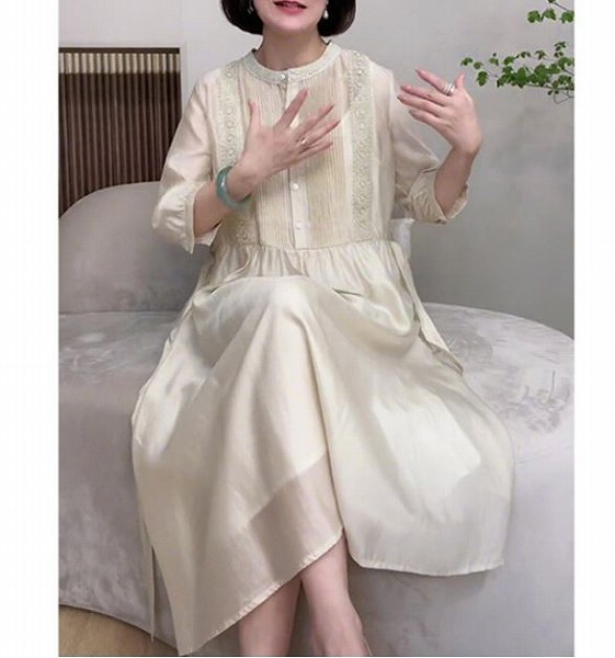 ゴージャス大人ワンピース パーティー エレガンス ラウンドネック 七分袖 MからXXL送料無料お出かけ女子会20代30代40代50代60代