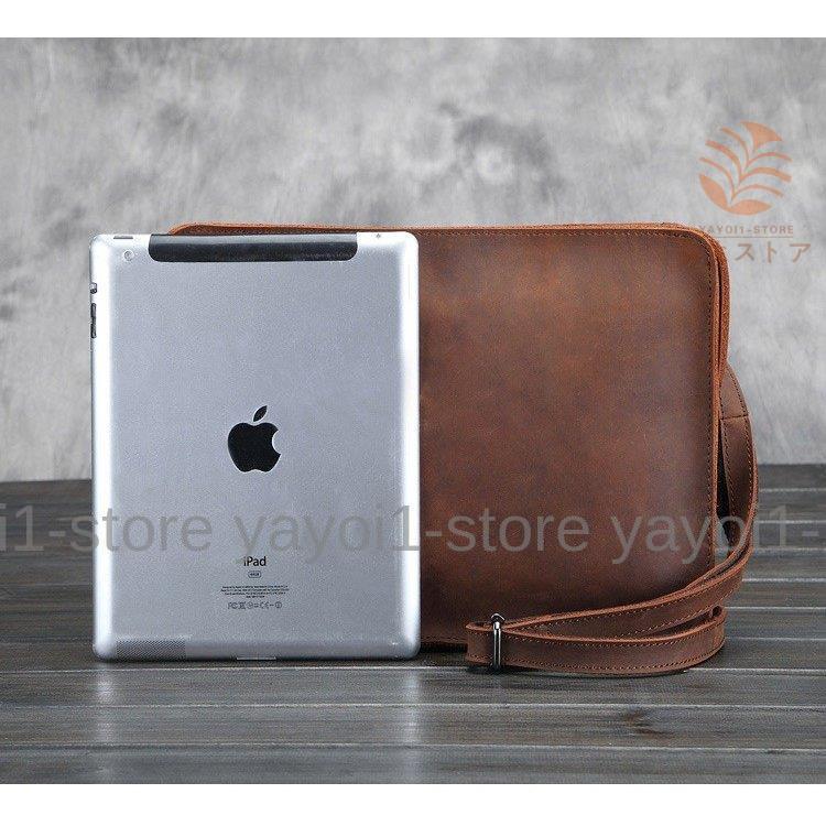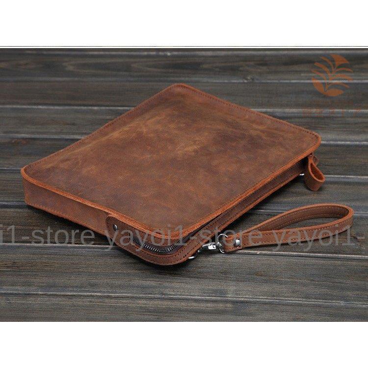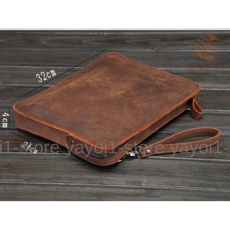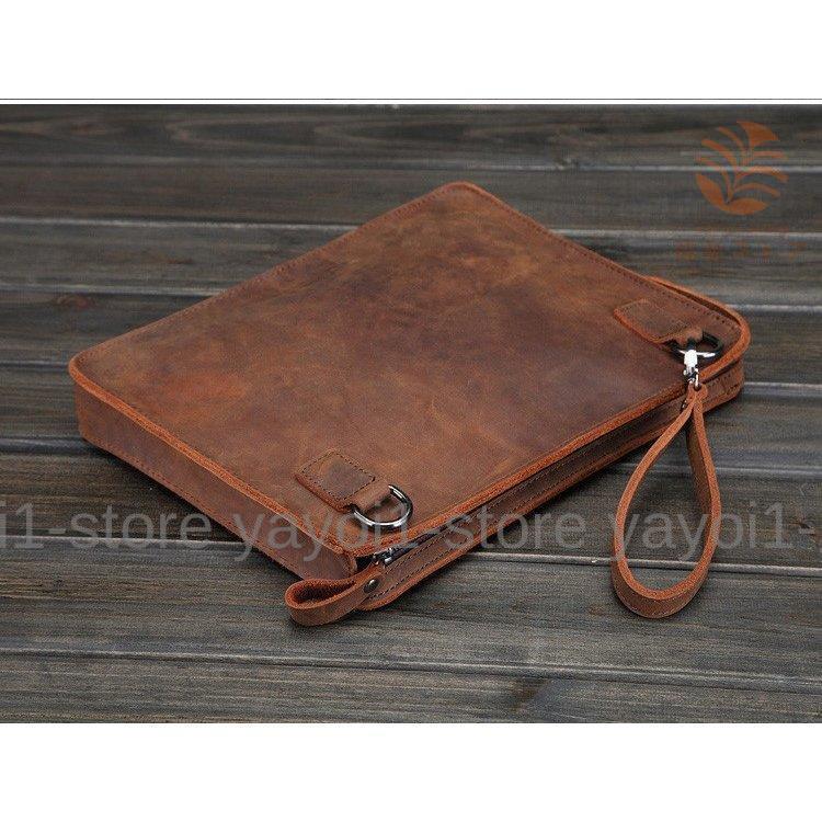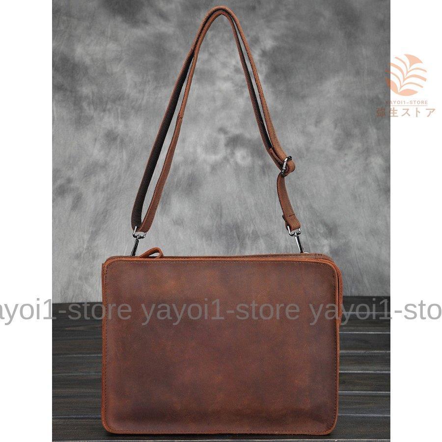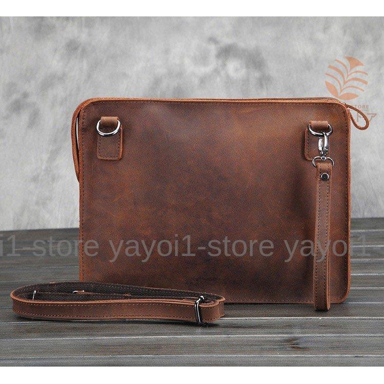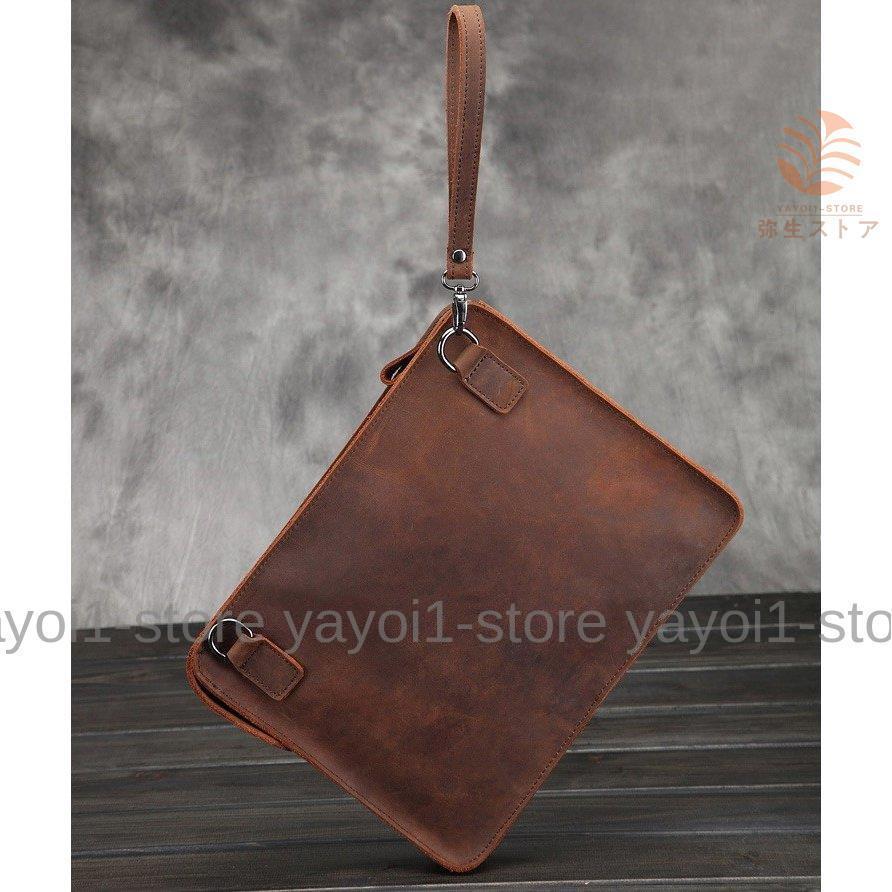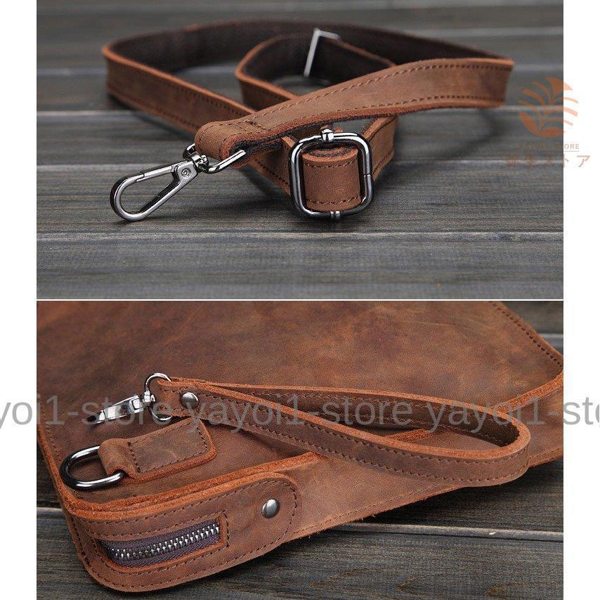 セカンドバッグ メンズ 。 レザー チェーン付き クラッチバッグ オーガナイザー 小型 ブラウン ショルダー付き ビジネスバッグ ショルダーバッグ