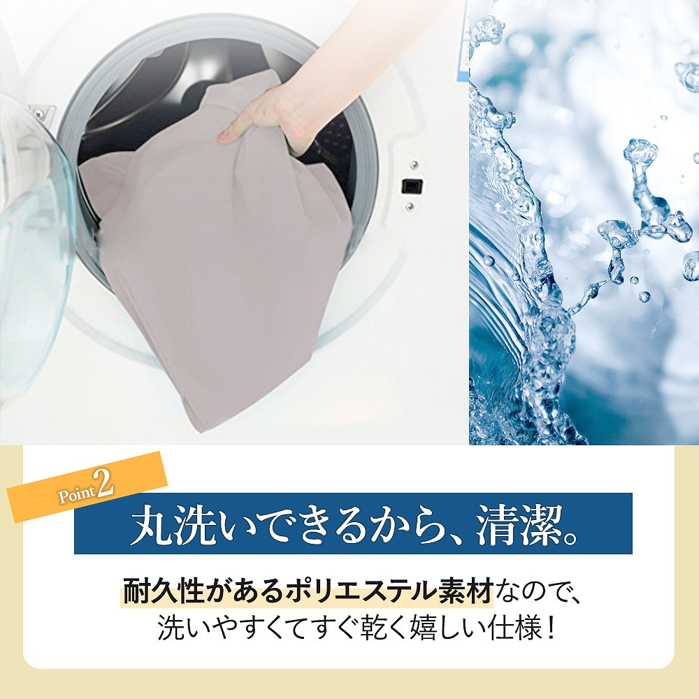 耐久性があるポリエステル素材なので、洗いやすくてすぐ乾く嬉しい仕様。