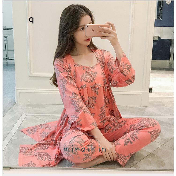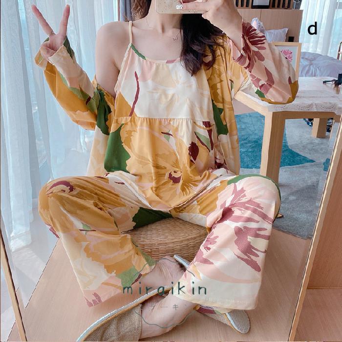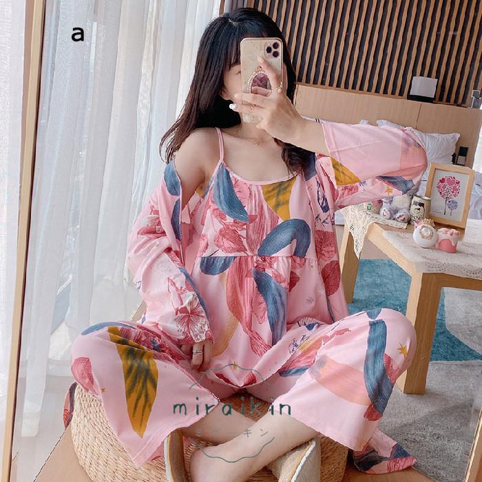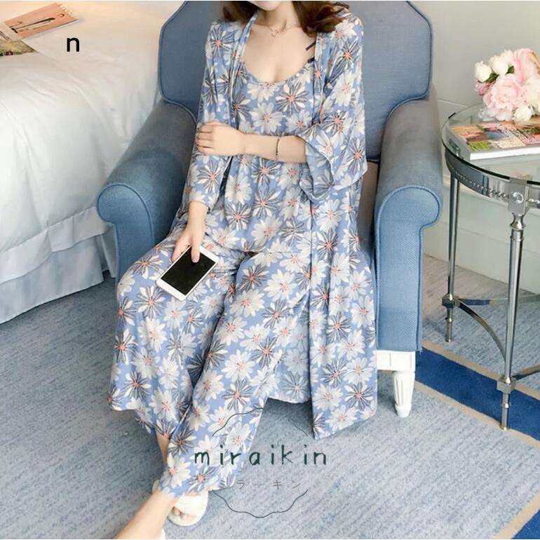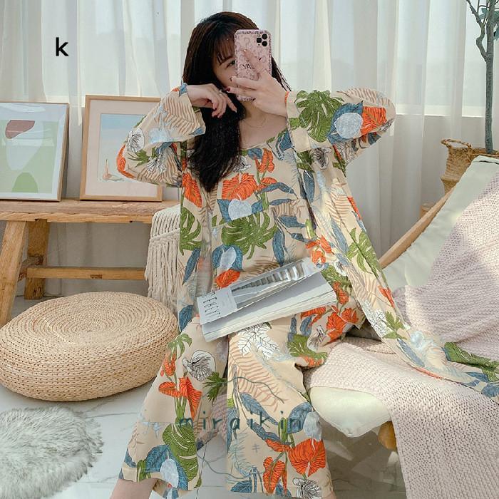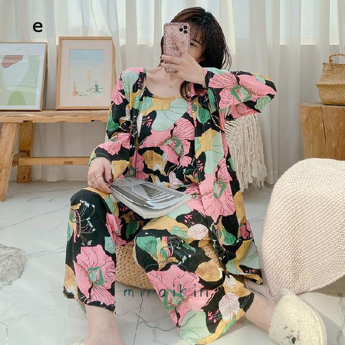 ルームウェア 3点セット レディース 花柄 パジャマ カーディガン ナイトウェア パンツ 部屋着 長袖 春秋夏 リラックス 20代 30代 40代 50代