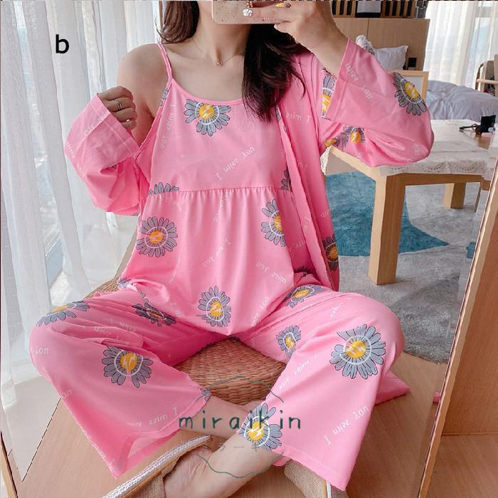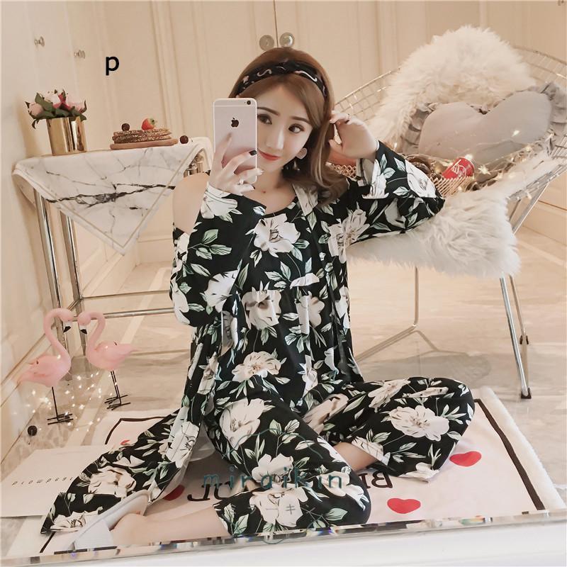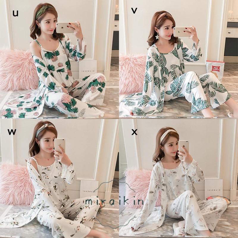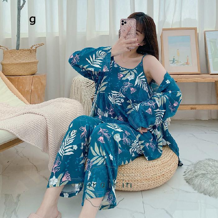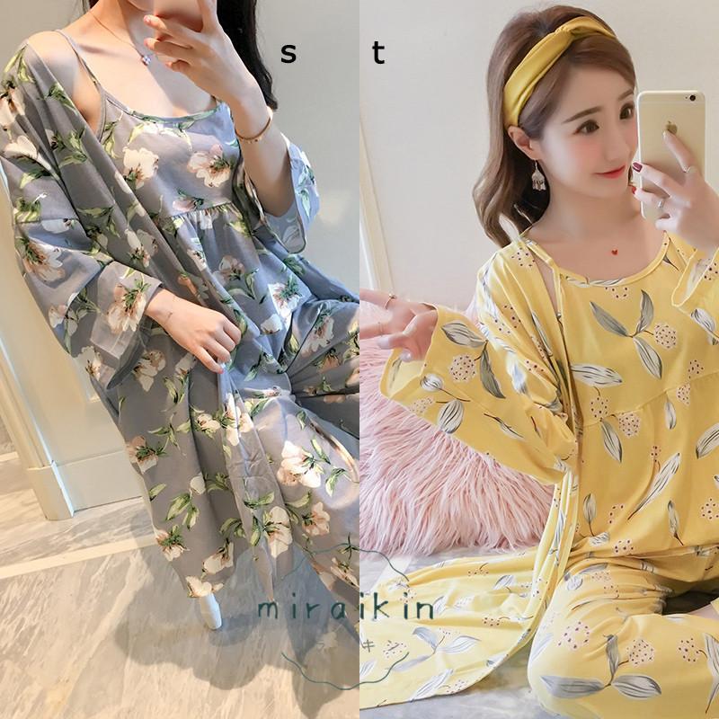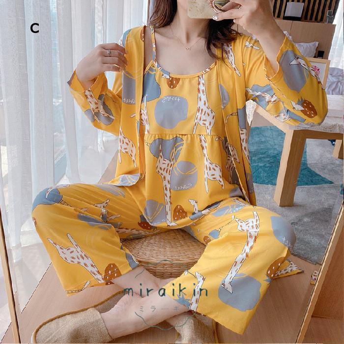 ルームウェア 3点セット レディース 花柄 パジャマ カーディガン ナイトウェア パンツ 部屋着 長袖 春秋夏 リラックス 20代 30代 40代 50代