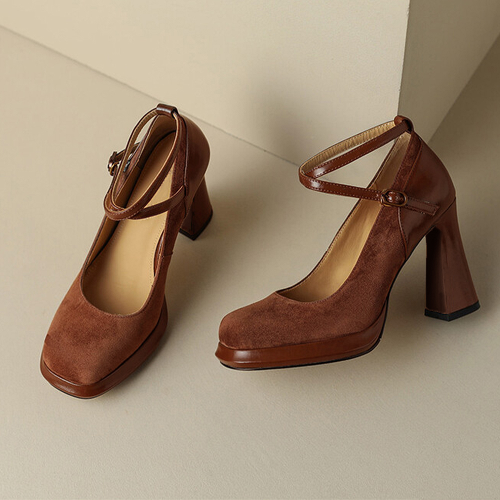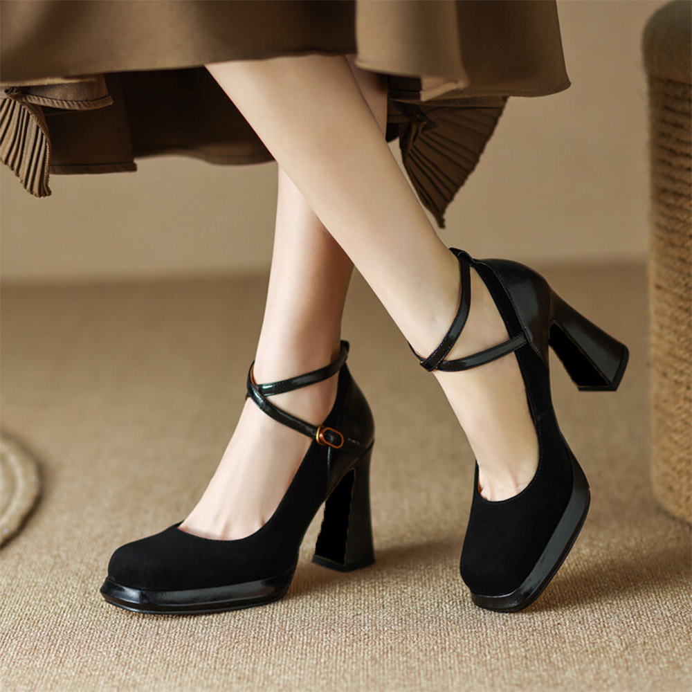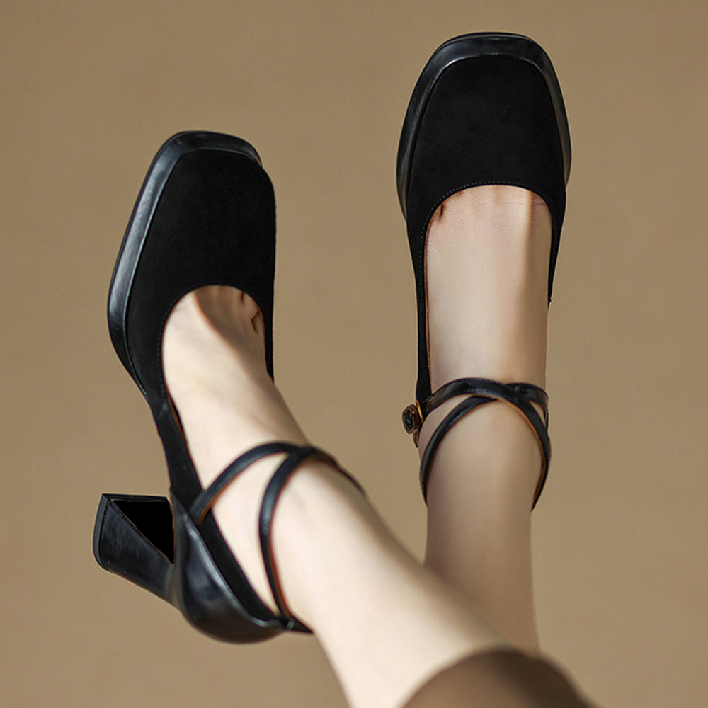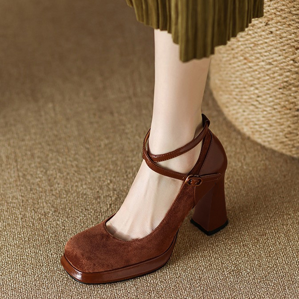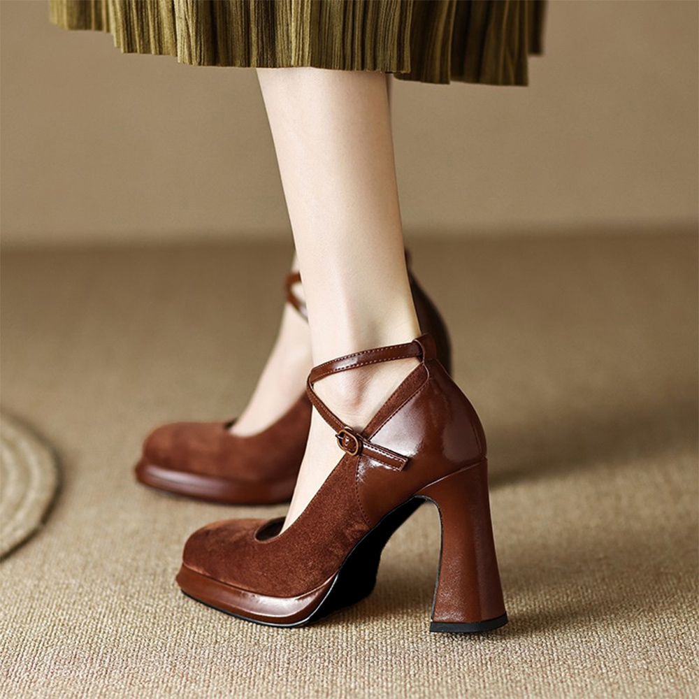 ベルトが足首をしっかりホールドしてくれるし、太いヒールで安定感も抜群。