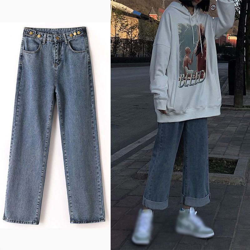 レディース デニム ストレッチ ジーンズ ハイウエスト ロング丈 秋 カジュアル ボ秋服 シンプル