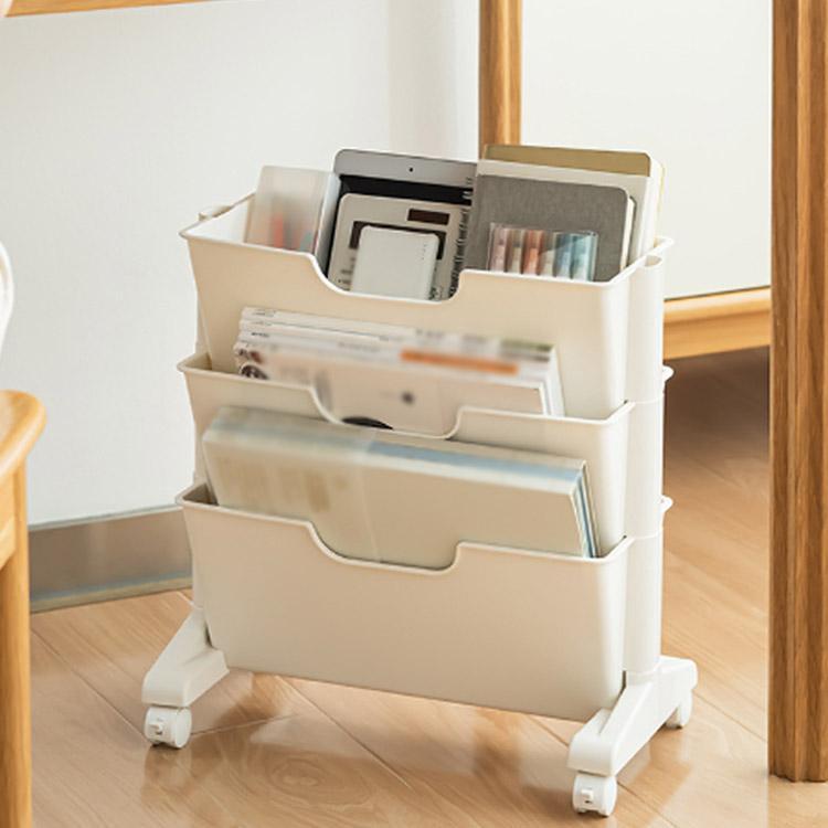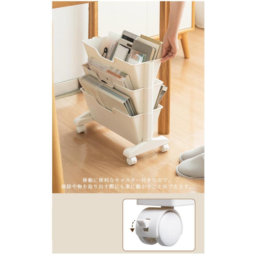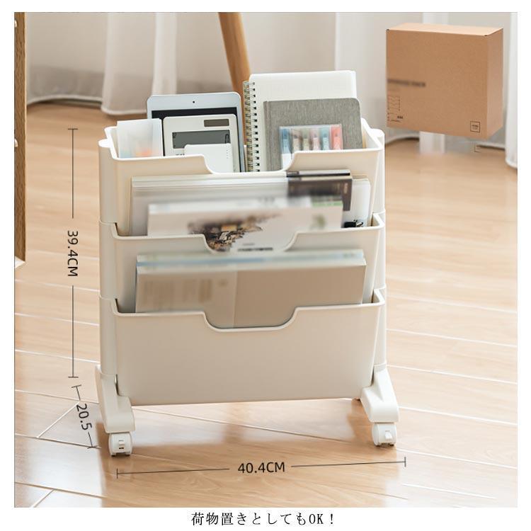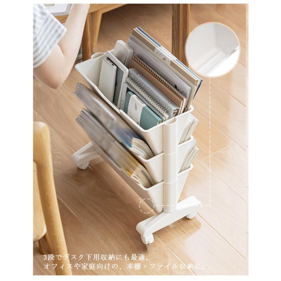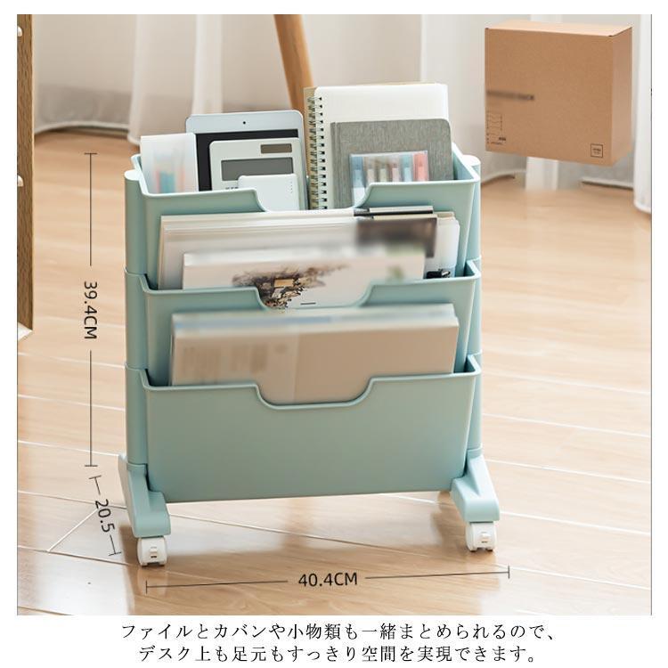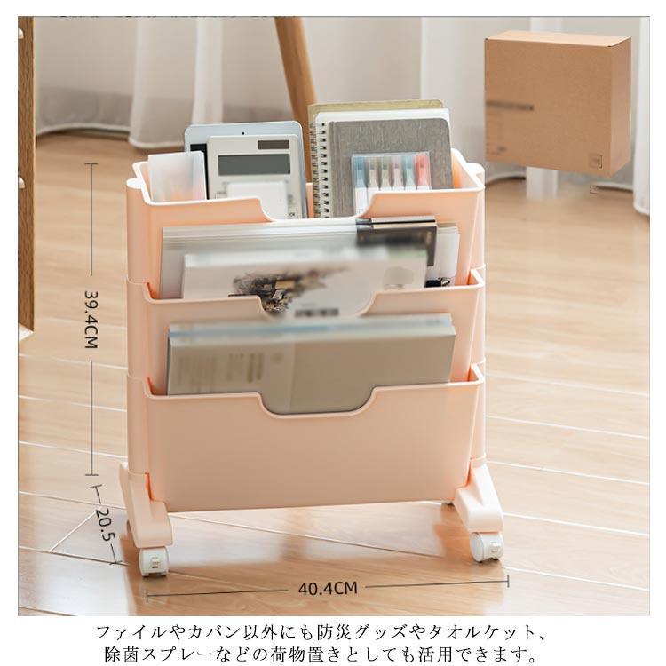 ファイルワゴン マガジンラック スリム 3段 キャスター 本棚 新聞 小物収納 ファイル立て雑誌収納 本収納 文房具収納 移動 棚 書類整理 収納棚