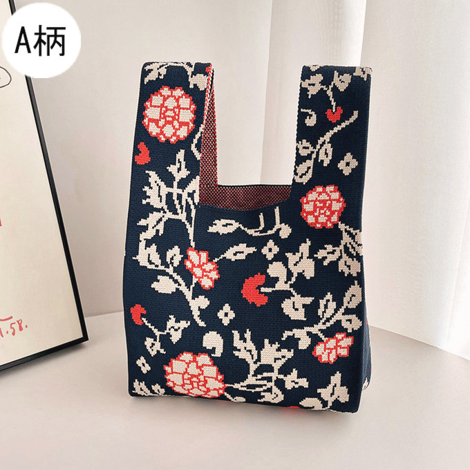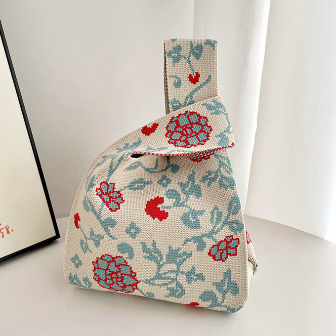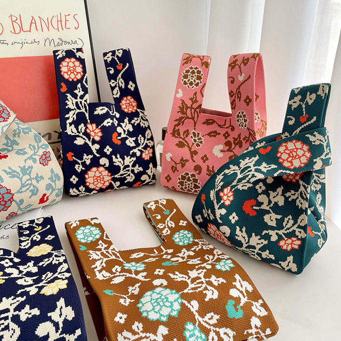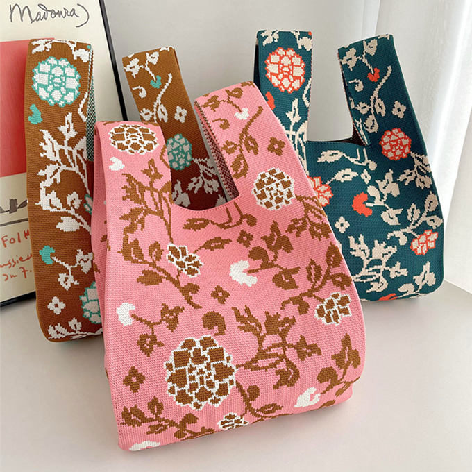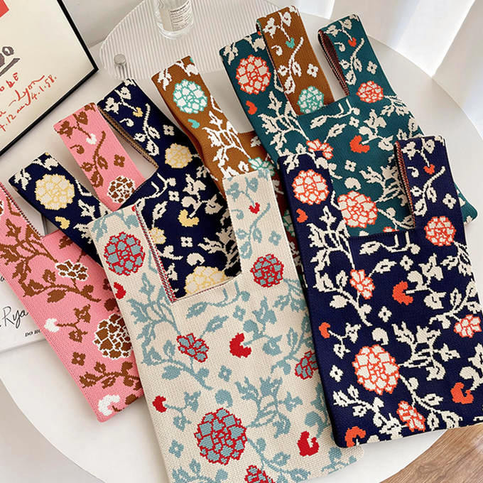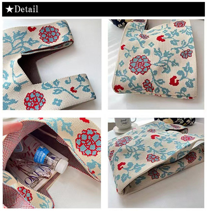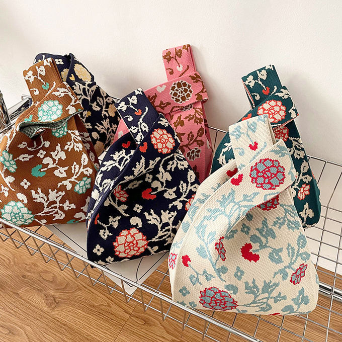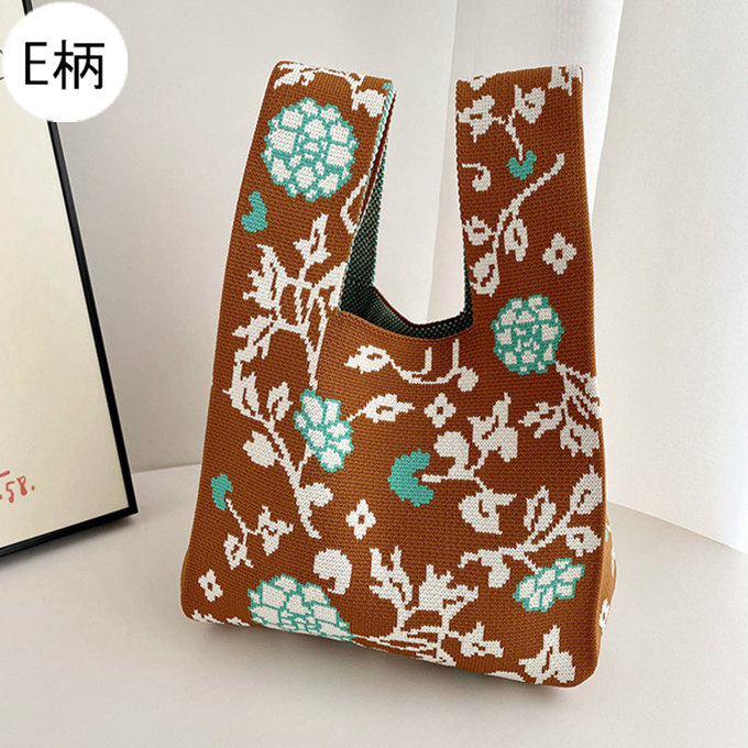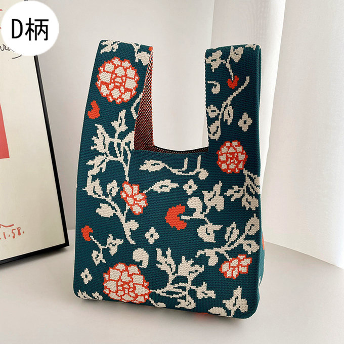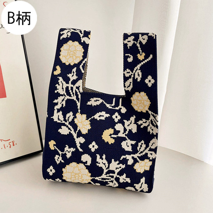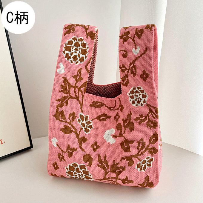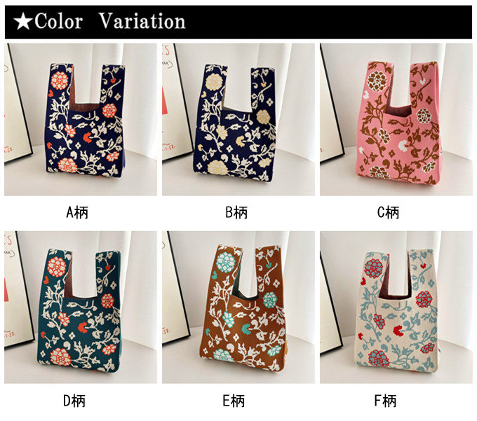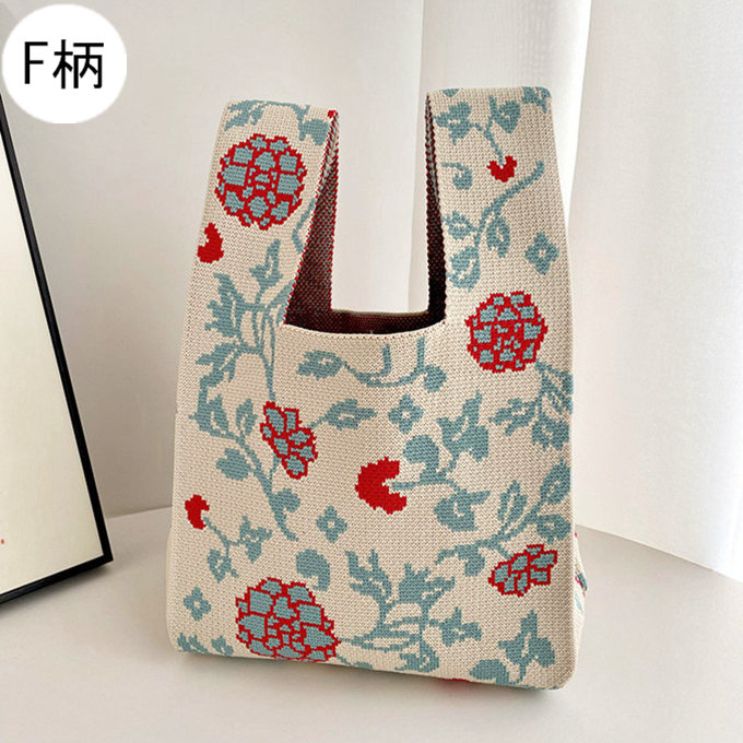 選べる65柄 レディース ニット ミニトート 編み トートバッグ ジャガード編みバッグ バッグ ニットバッグ 小さめ 厚手 フラワー 花柄 大きな柄 マルシェバック