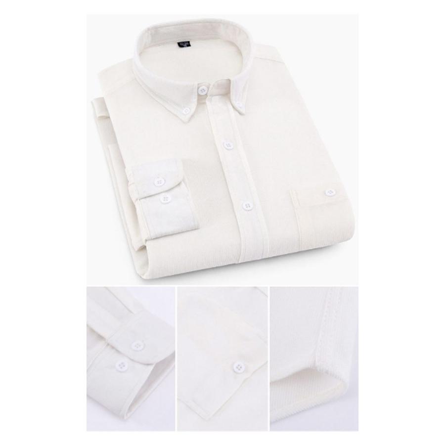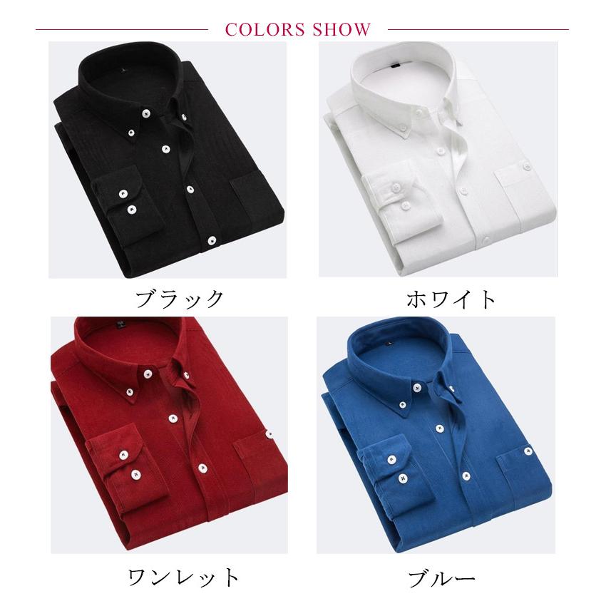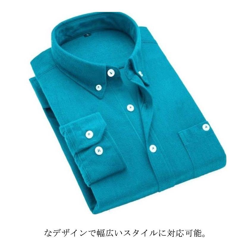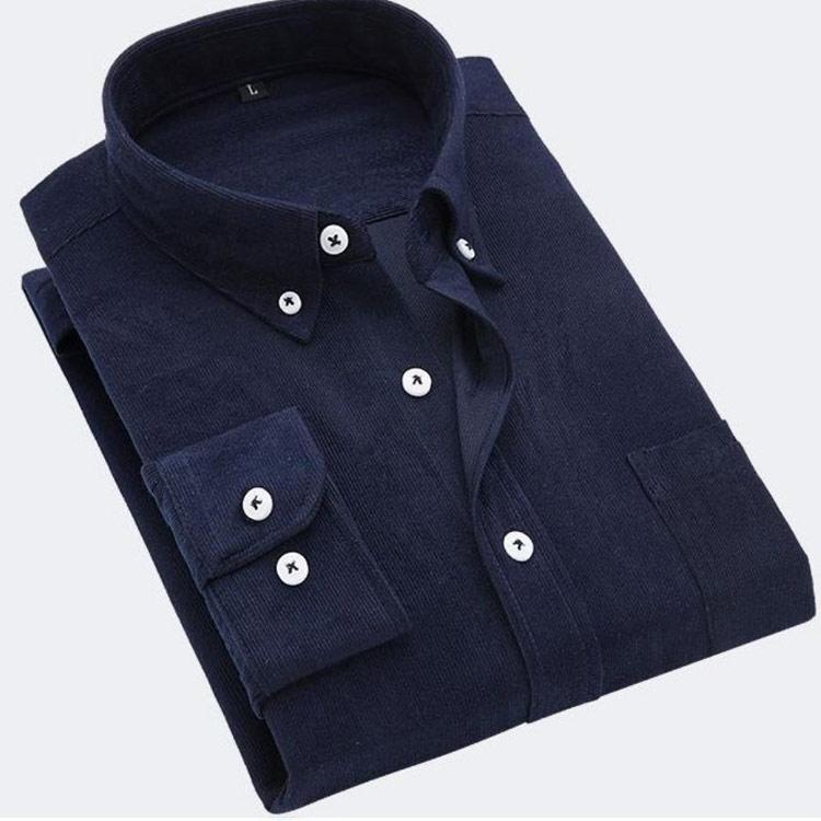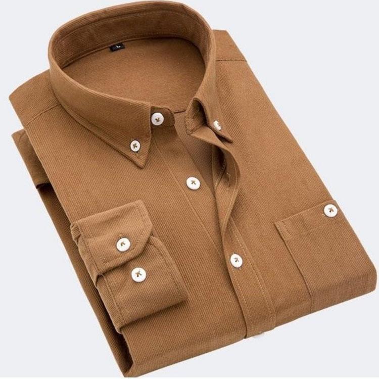 コーデュロイ生地で仕上げた無地の長袖シャツです。