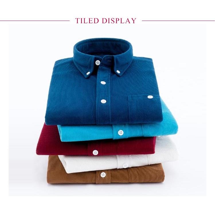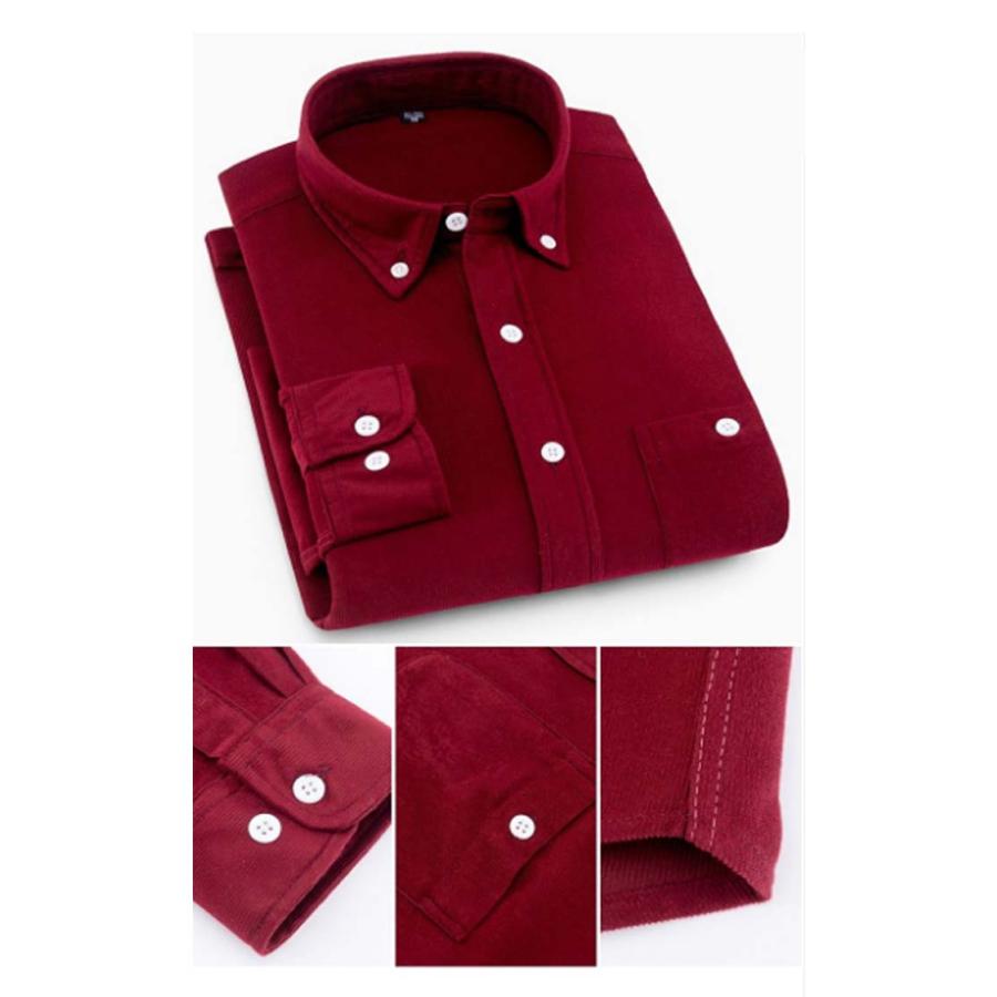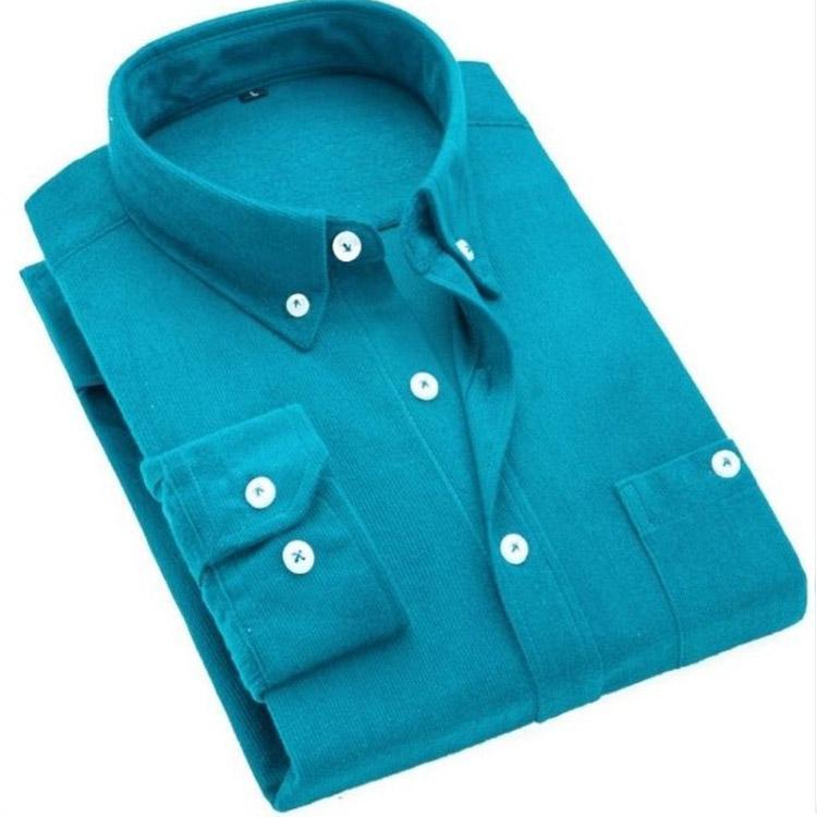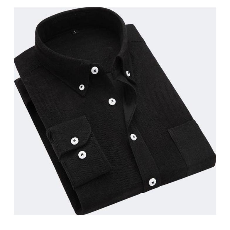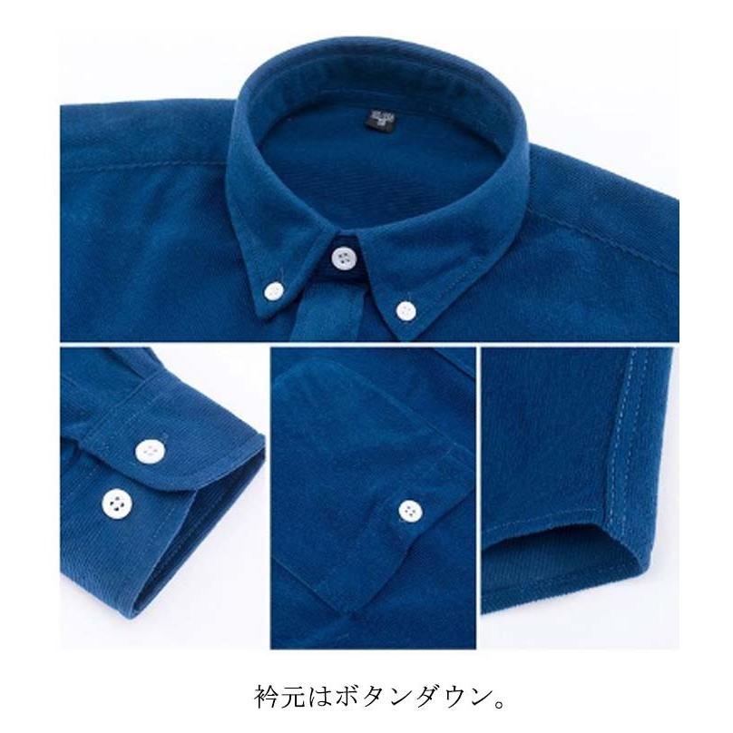 コーデュロイ生地で仕上げた無地の長袖シャツです。