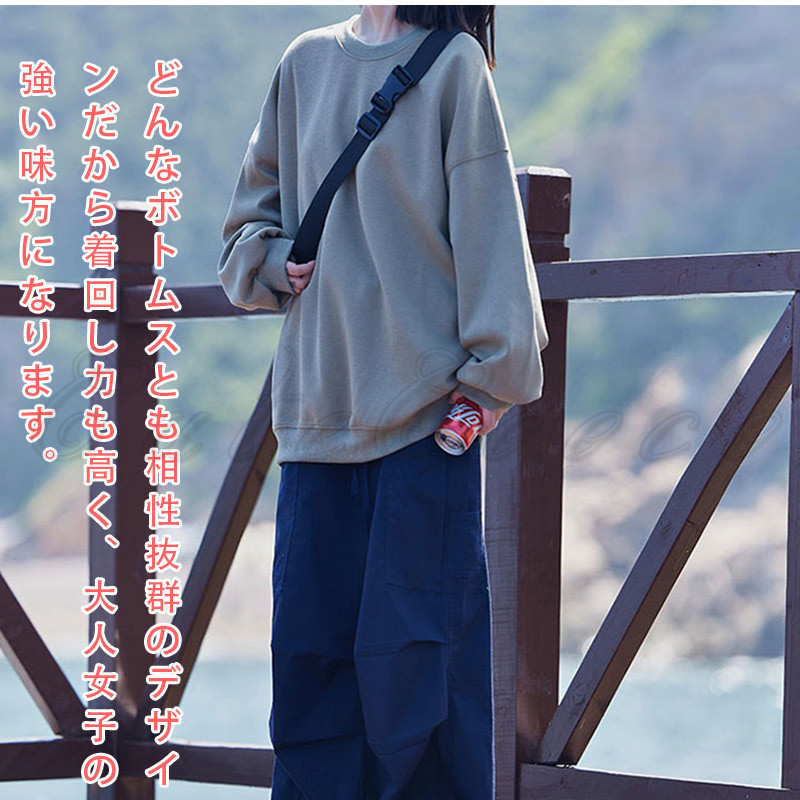 トレーナ レディース ウェット 長袖 ロング丈 ルーズフィット 春 カジュアル プルオーバー 秋 冬 ゆったり デイおしゃれ シンプル 体型カバー 送料無料