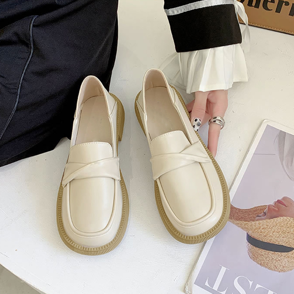 韓国歩きやすい 大人女子 学生靴 ラウンドトゥ シューズ レトロ 美脚パンプス 疲れにくい レザー調パンプス黒 通勤通学