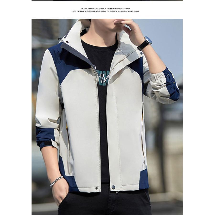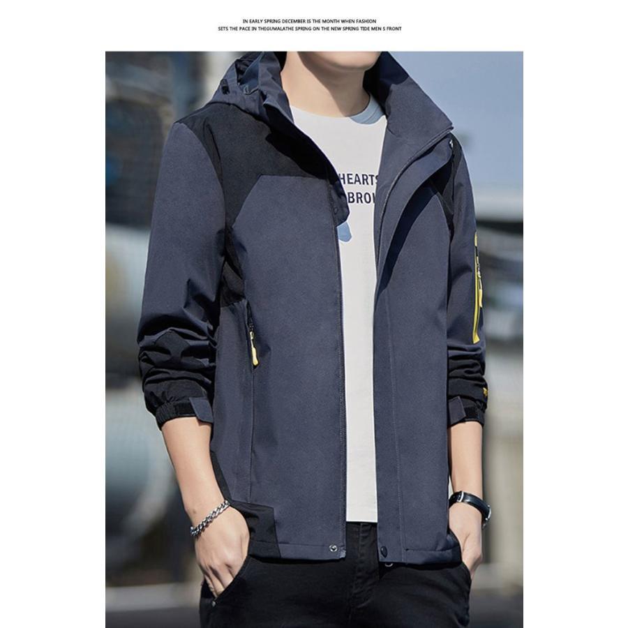 マウンテンパーカー ウィンドブレーカー メンズ 配色 撥水 防風 ソフトシェル 薄手 ジップパーカー スタンドカラー ジップアップ 立ち襟 フード付き アウター 秋服 カジュアル ブルゾン ジャンパー 秋