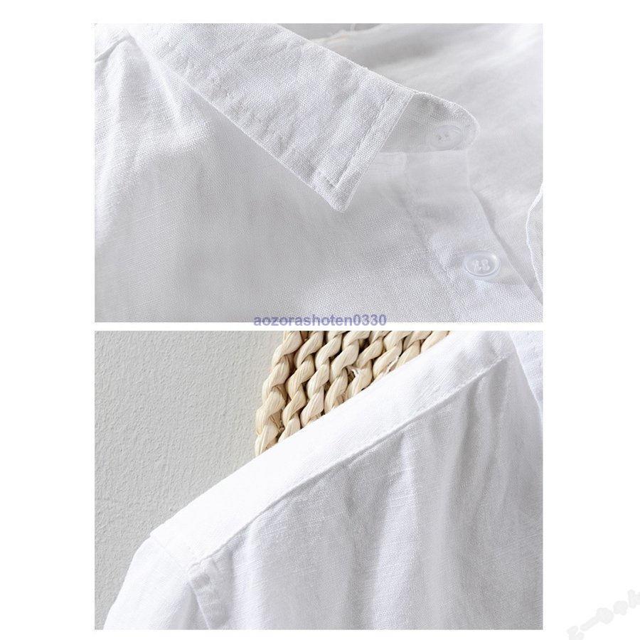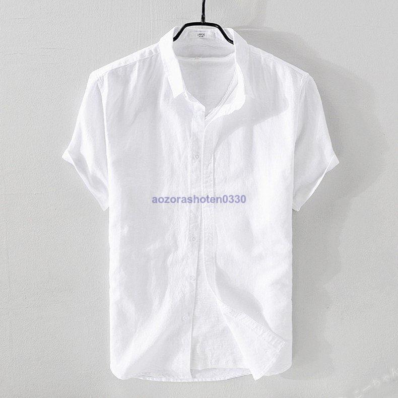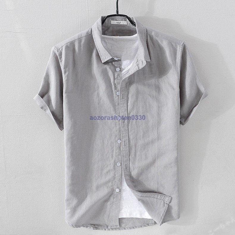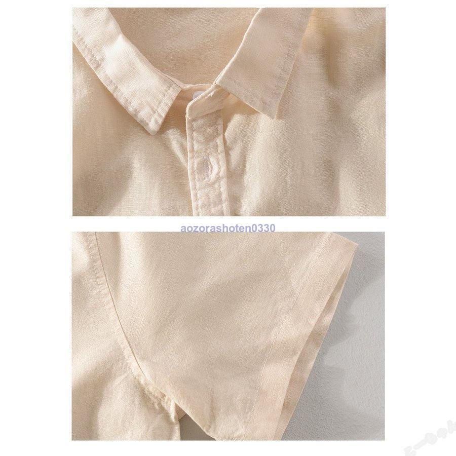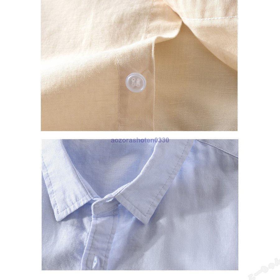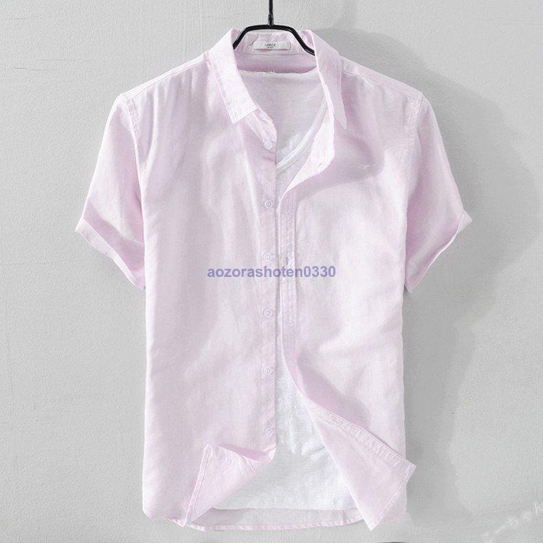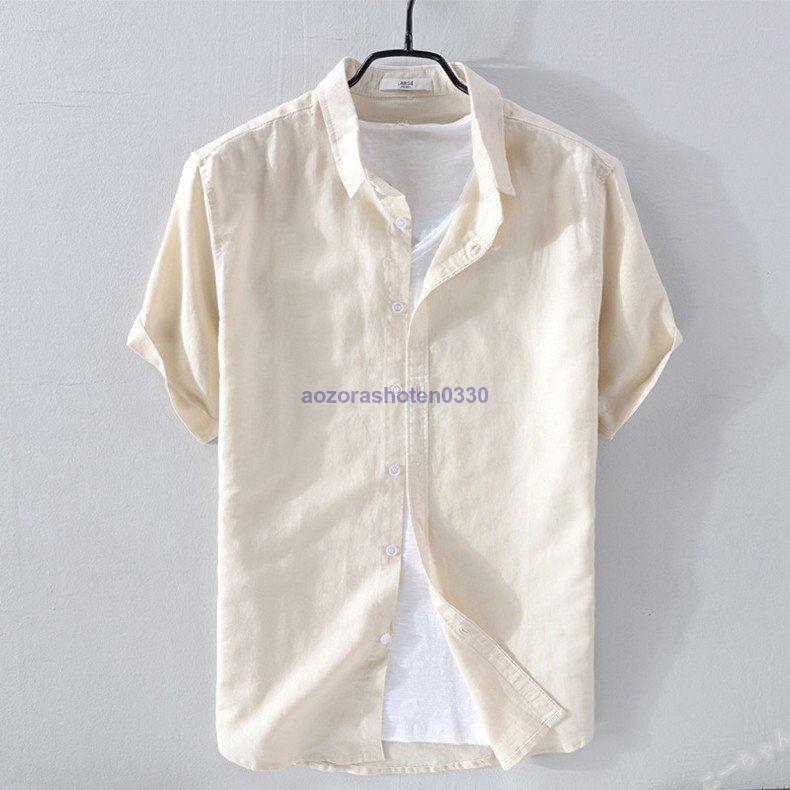 リネンシャツ メンズ 半袖 シャツ 無地 シンプル 綿 麻 トップス 羽織り 通気