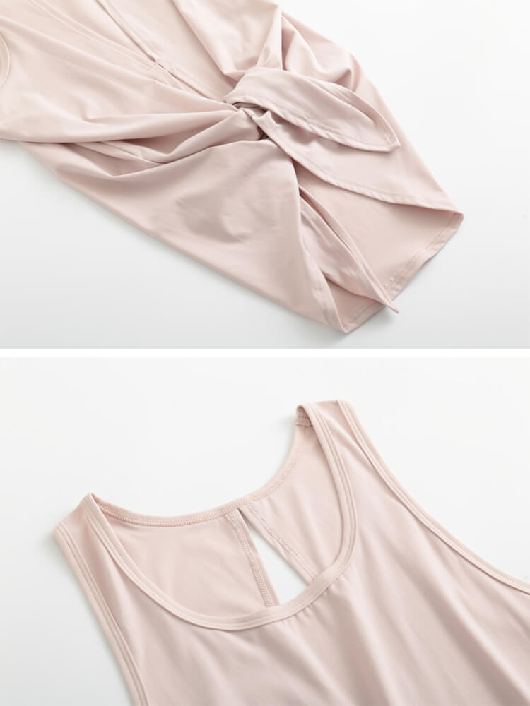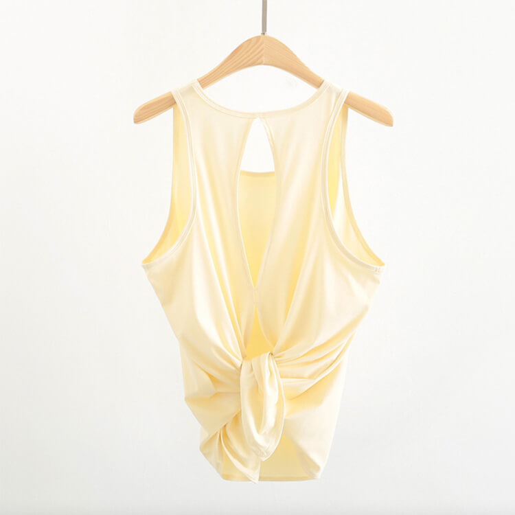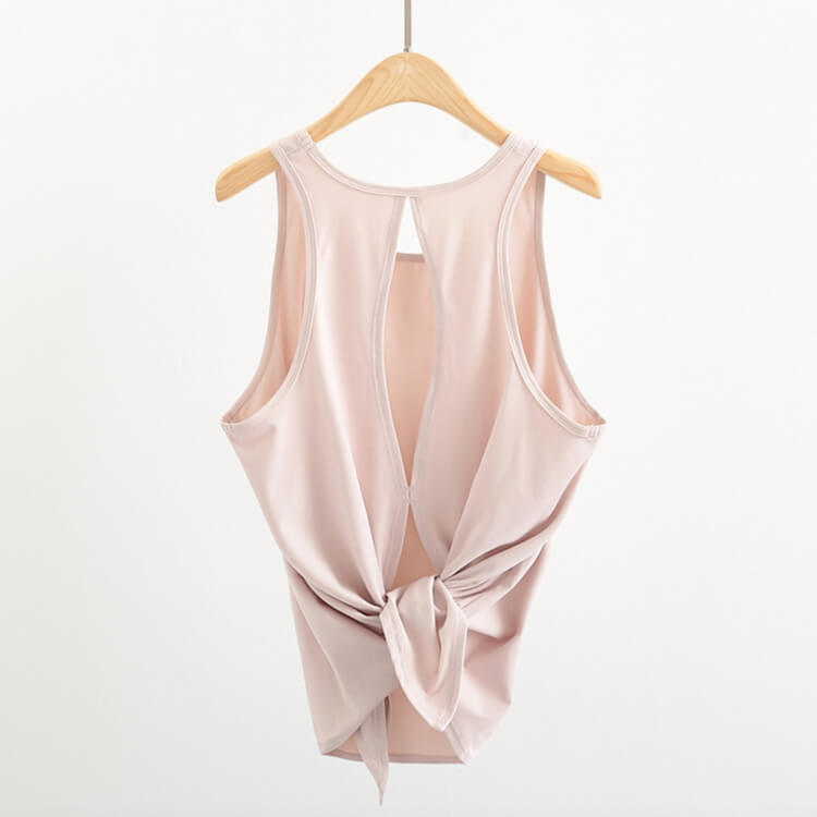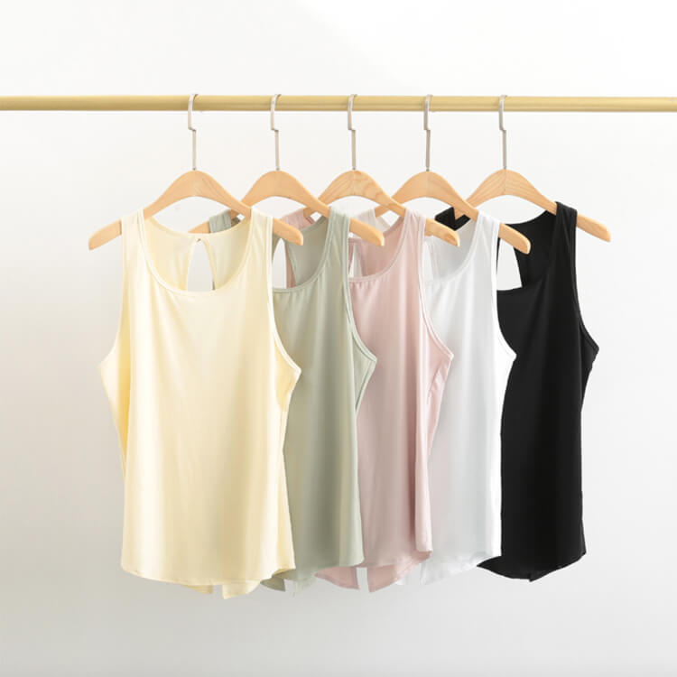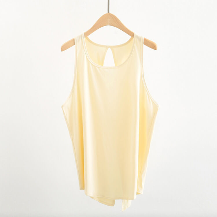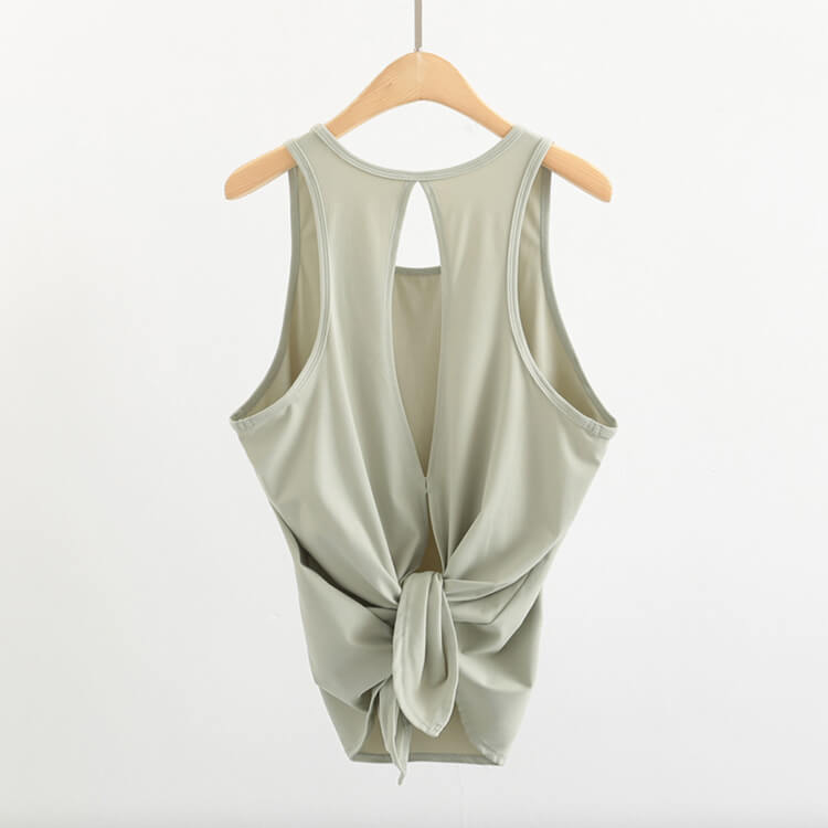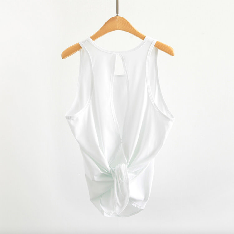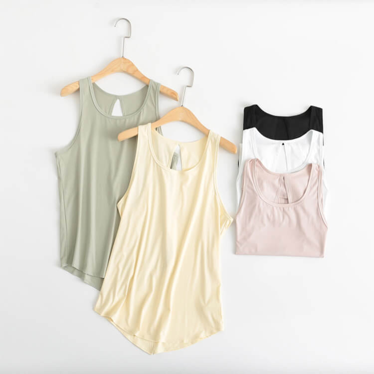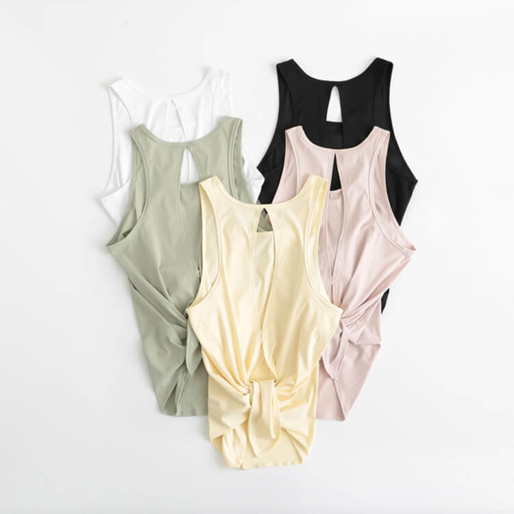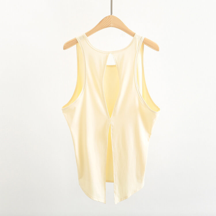 おしゃれなバックスリットカット入りフィットネスタンクトップ。