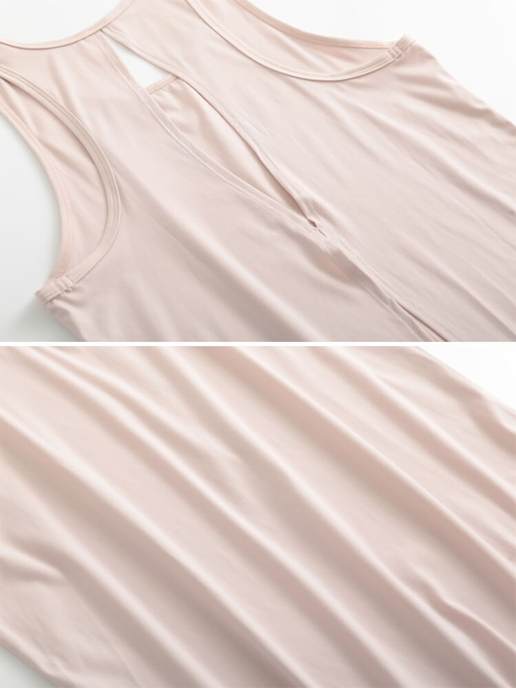 ヨガウェア タンクトップ トップス ホットヨガ 無地 長め 背中見せ ノースリーブ 速乾 フィットネス 無地 スポーツウエア スリット Tシャツ
