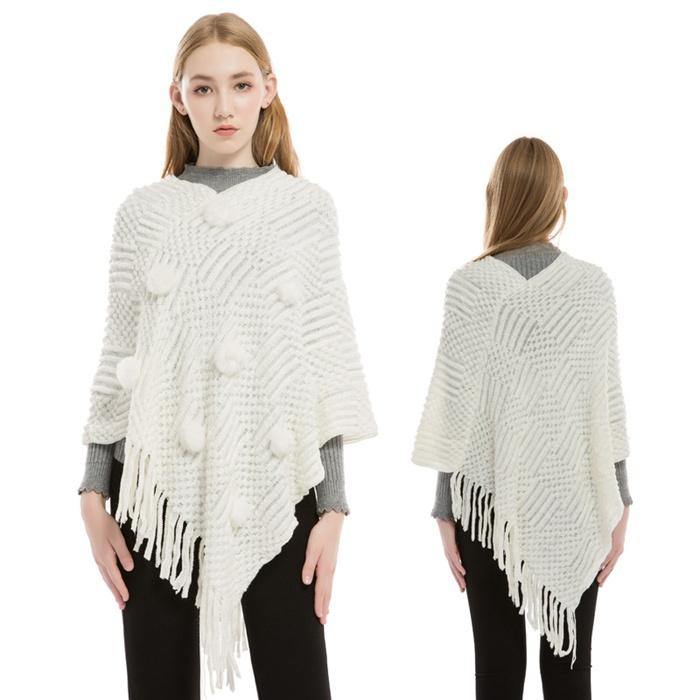 ポレロ ポンチョ ストール 大判 ショール 秋冬 フリンジ レディース 防寒着 ケープコート ニット 大判ストール