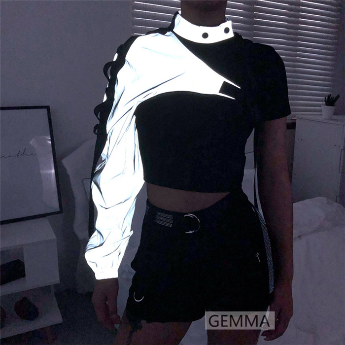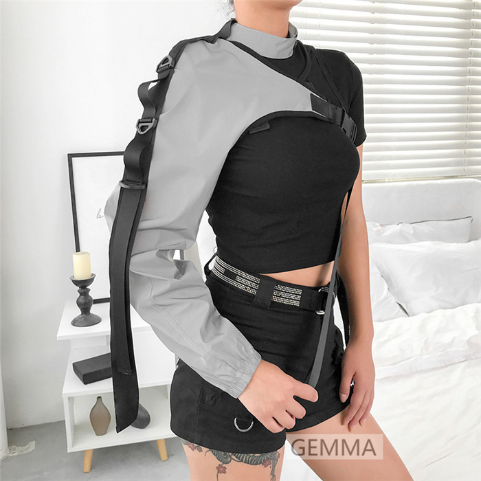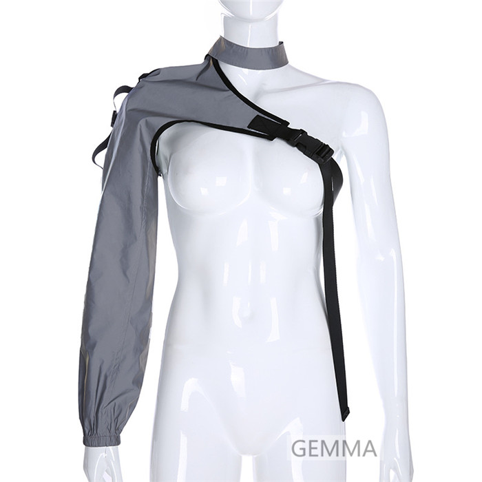 ダンストップス 片腕 ワンショルダー レディース ステージ衣装 ダンス衣装 グレー 舞台衣装 黒 イベント アームウォーマー トップス グリーン