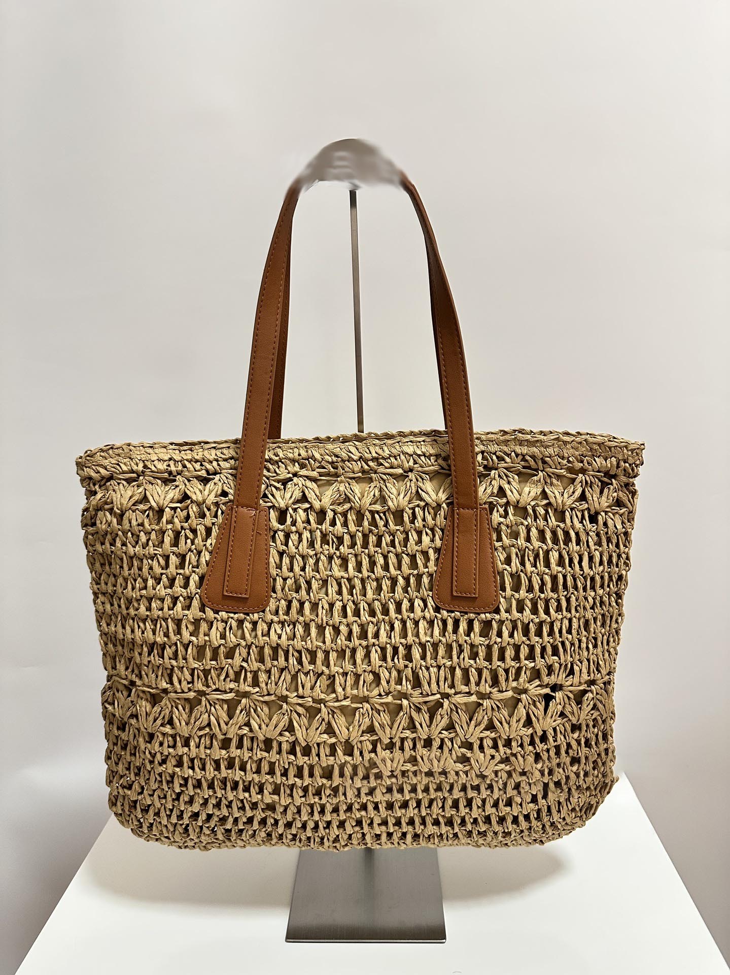 商品名:かごバッグ 透かし編み 内袋付き トートバッグ ファスナー付き サマーバッグ 浴衣バッグ 大きめ A4 トート バッグ 大容量 レディース